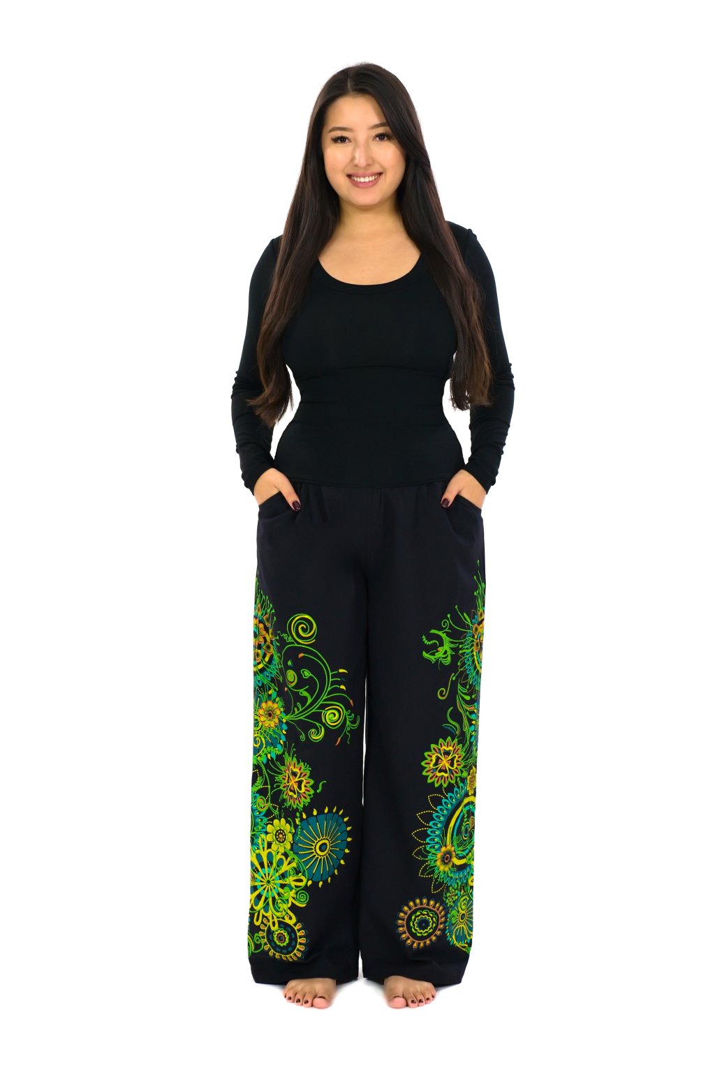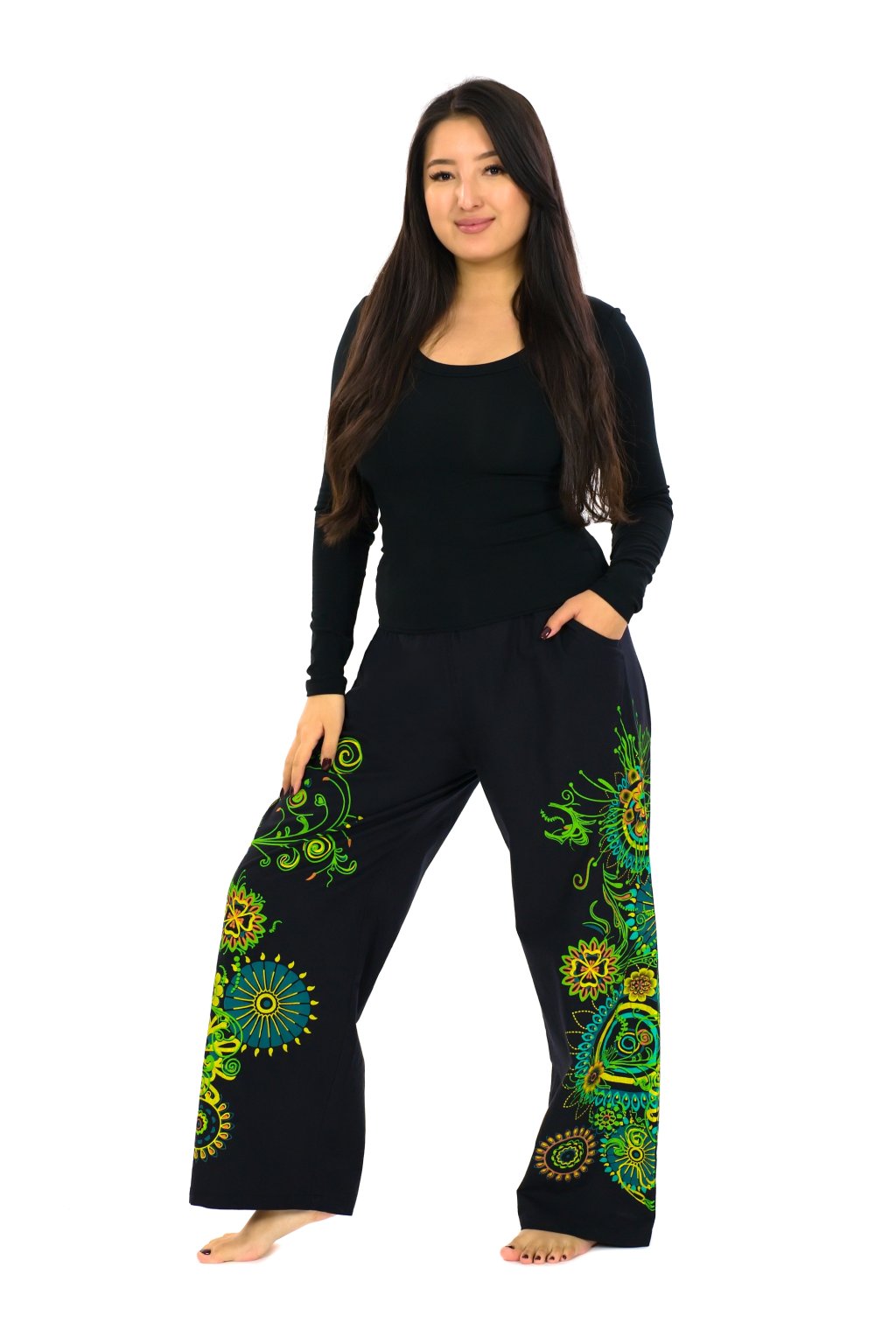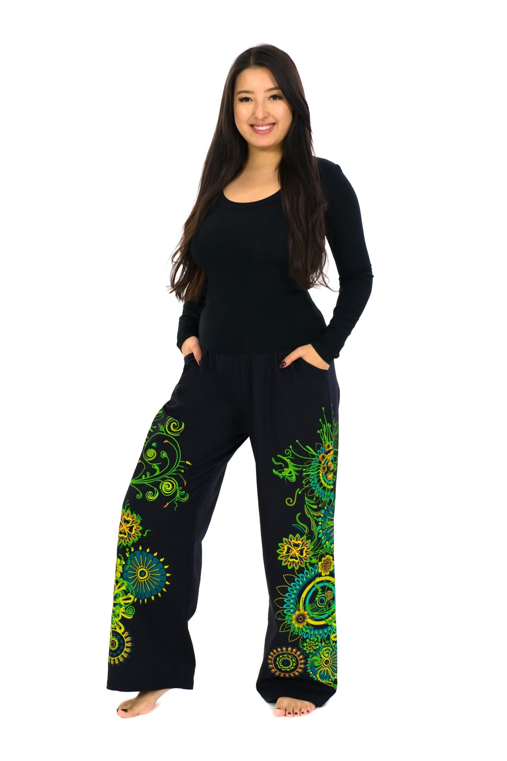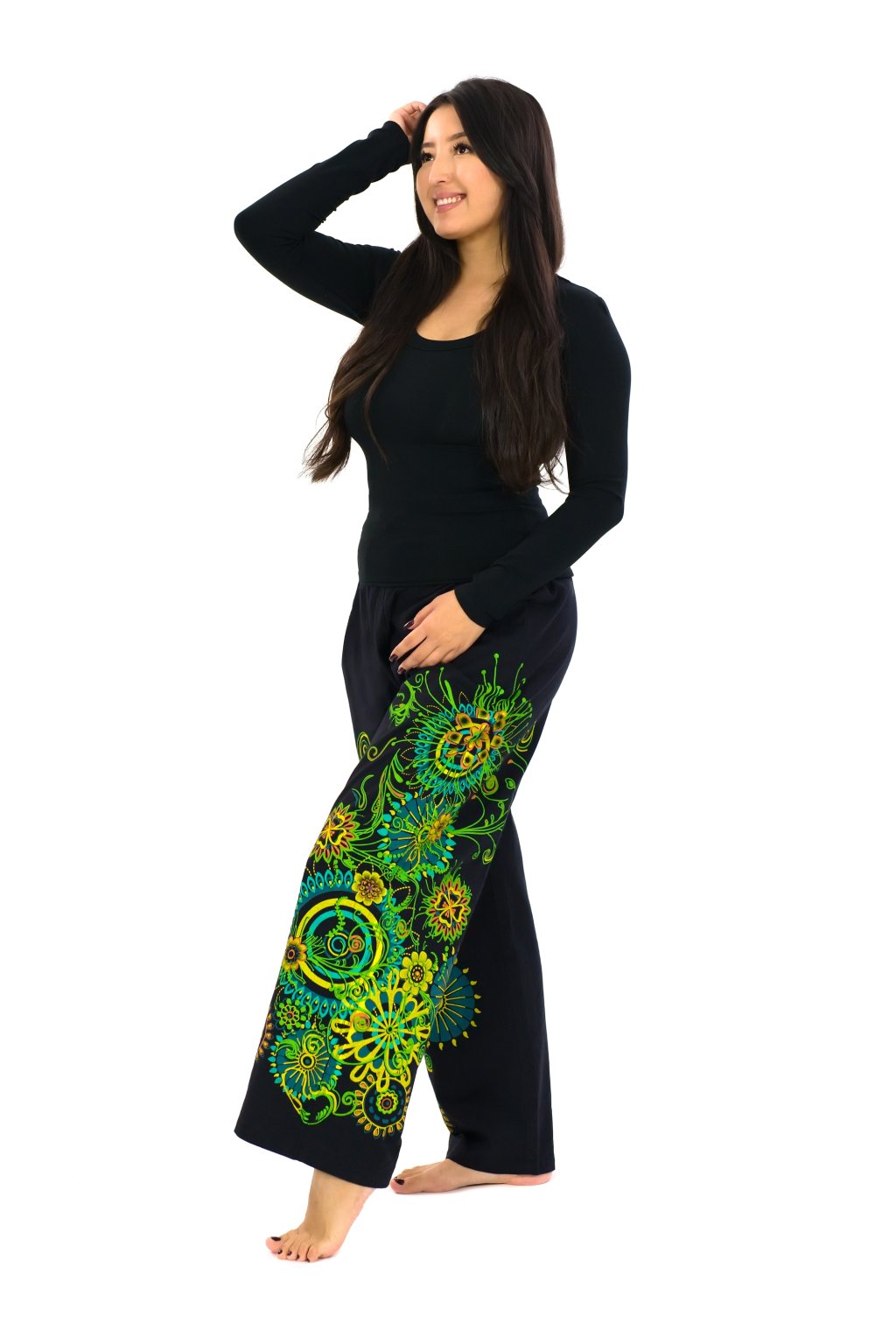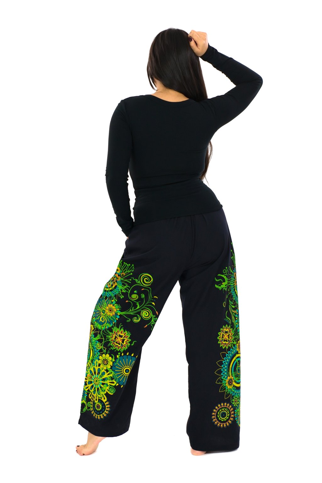 Uvidíte, že nosit tyhle pohodlné krásky je návykové! Kalhoty Kalea mají jednoduchý rovný střih, který se vám přizpůsobí díky pružné gumě v pase a stahovací šňůrce. Zdobí je mimořádně krásný, barevný vzor s ornamenty.