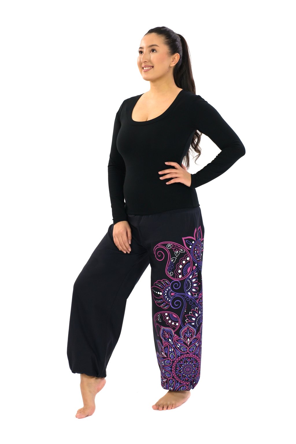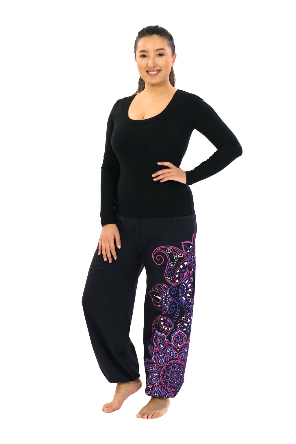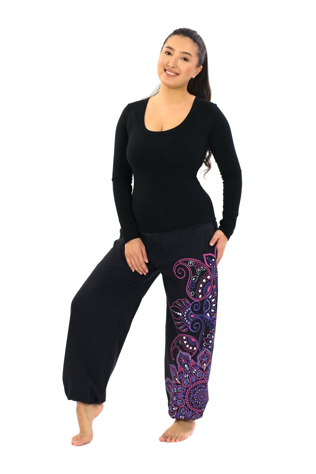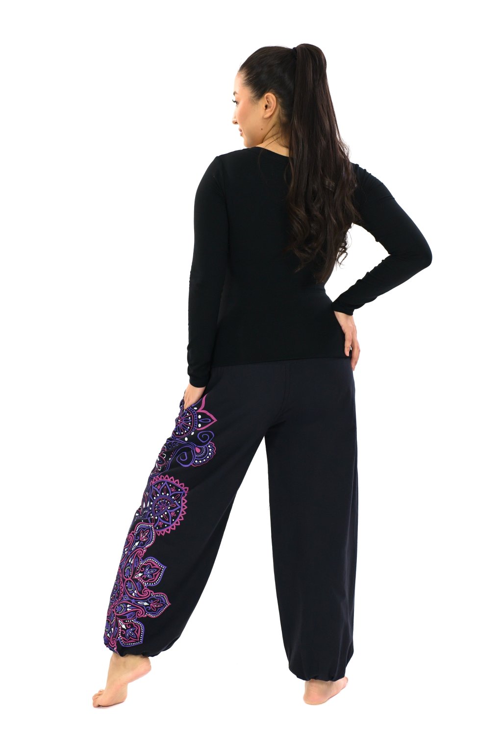 Kalhoty Thea jsou zdobeny překrásnými a velmi pozitivními vzory květin a mandal, takže s nimi uděláte parádu kamkoli půjdete. Navíc mají praktické kapsy, které určitě oceníte. Pas je řešen širokým a pohodlným žabičkováním.