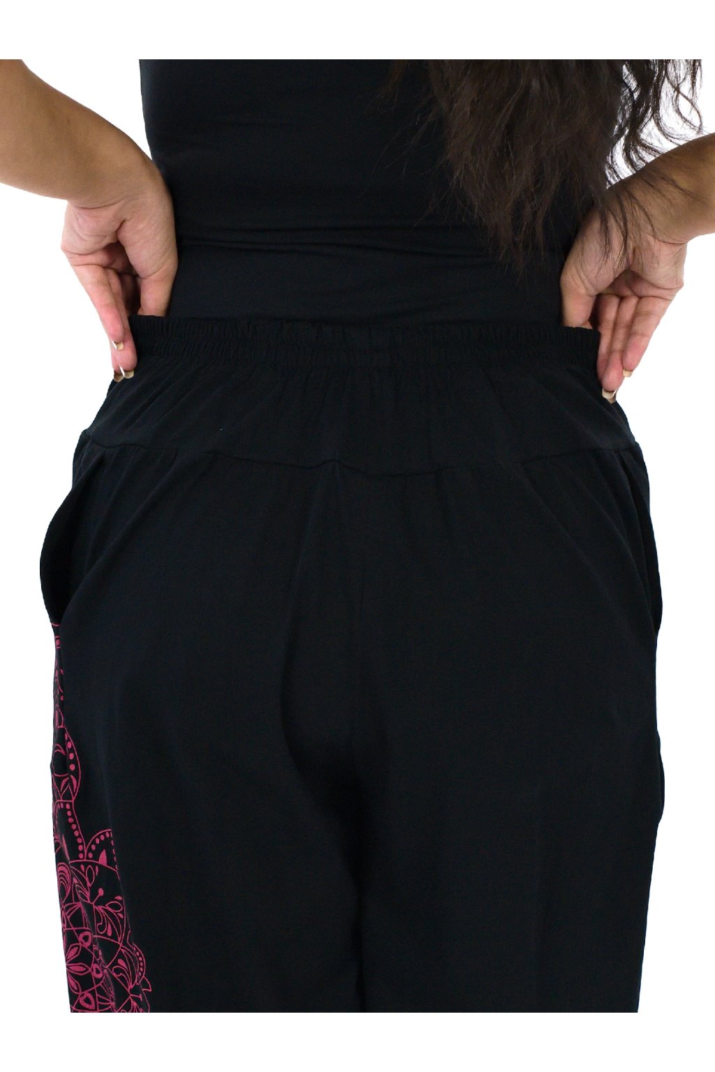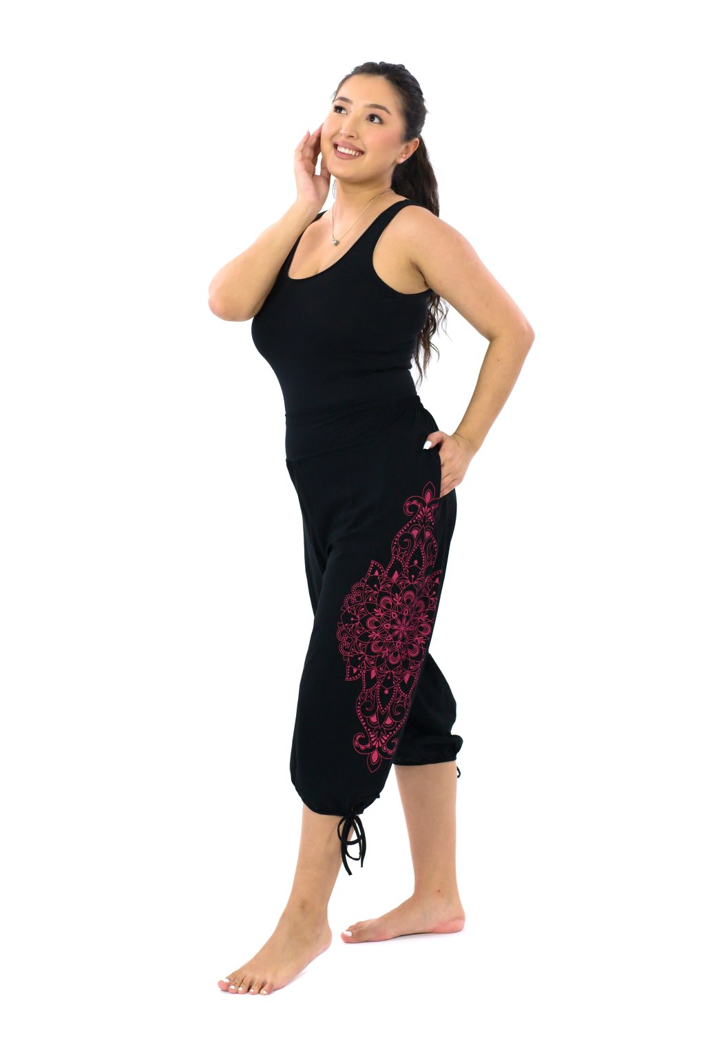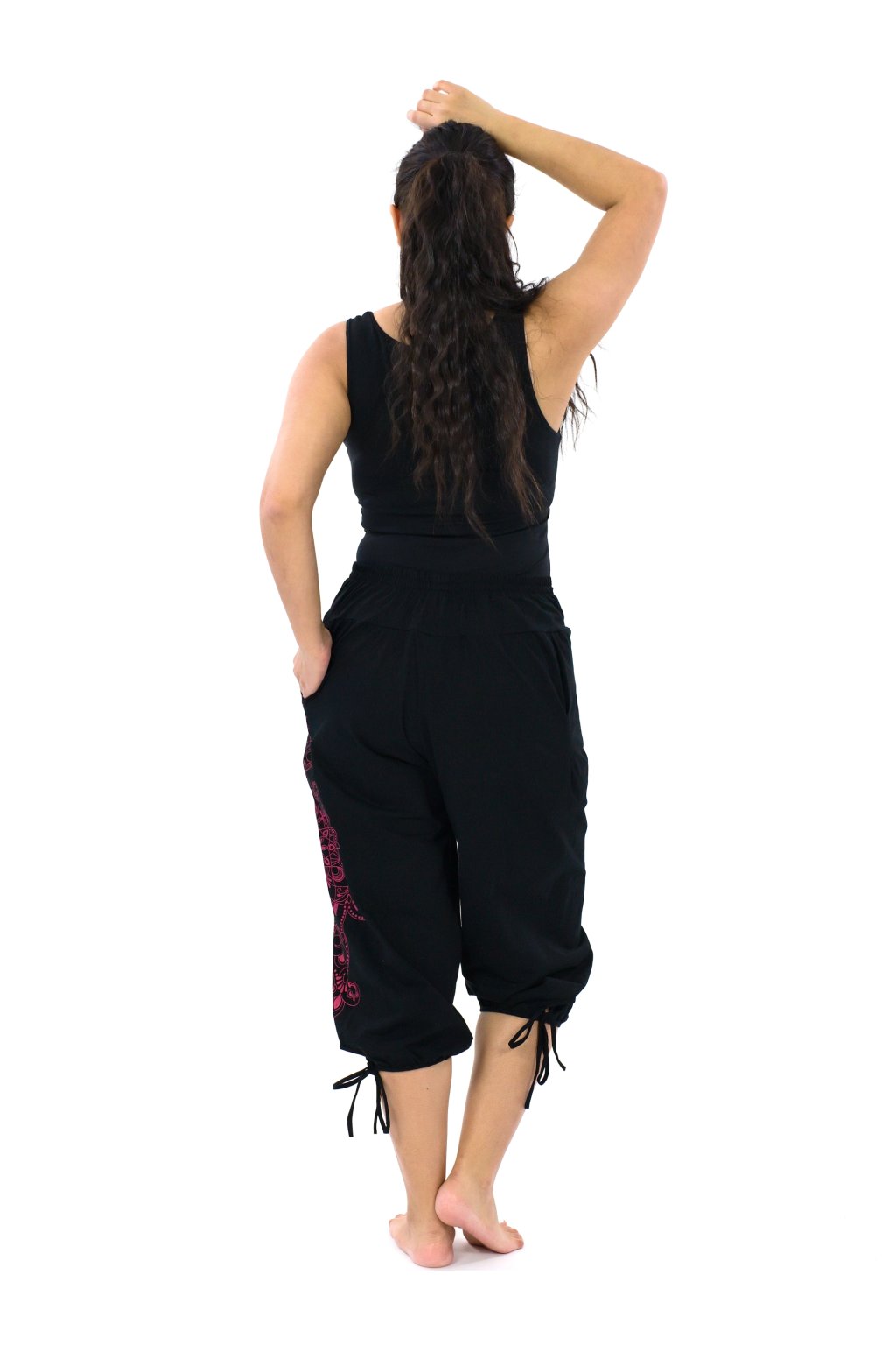 Designové a příjemné dámské kraťasy v oblíbené 3/4 délce vás potěší v teplých dnech. Mrkněte zblízka na jejich originální potisk.