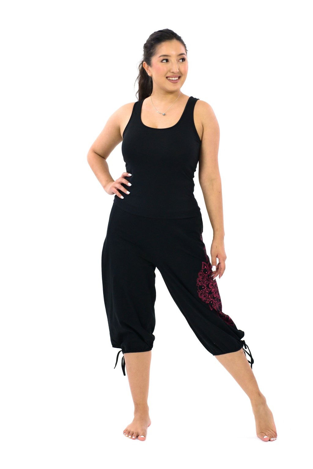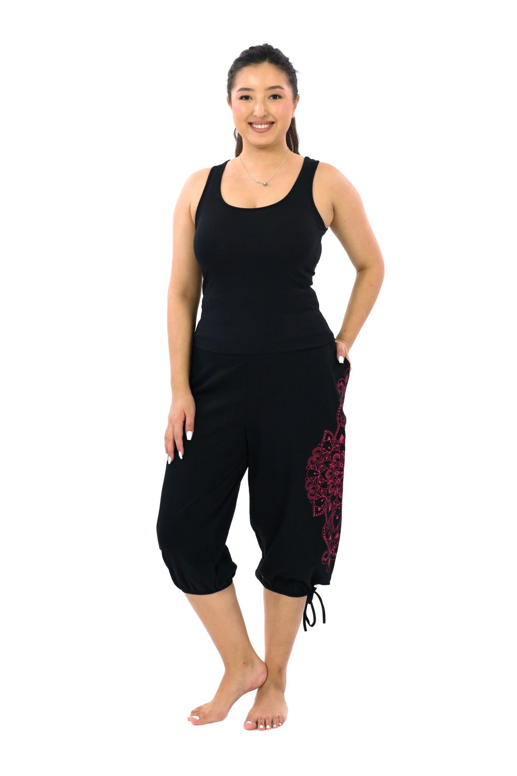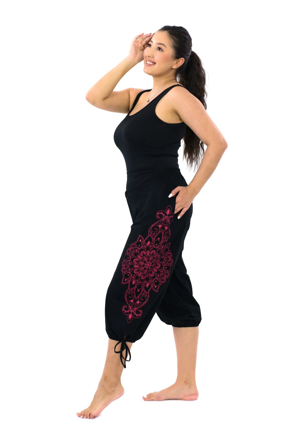 Designové a příjemné dámské kraťasy v oblíbené 3/4 délce vás potěší v teplých dnech. Mrkněte zblízka na jejich originální potisk.