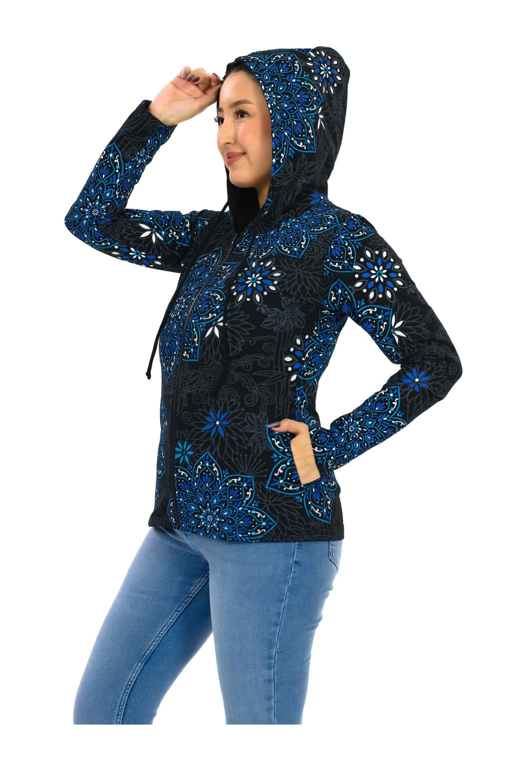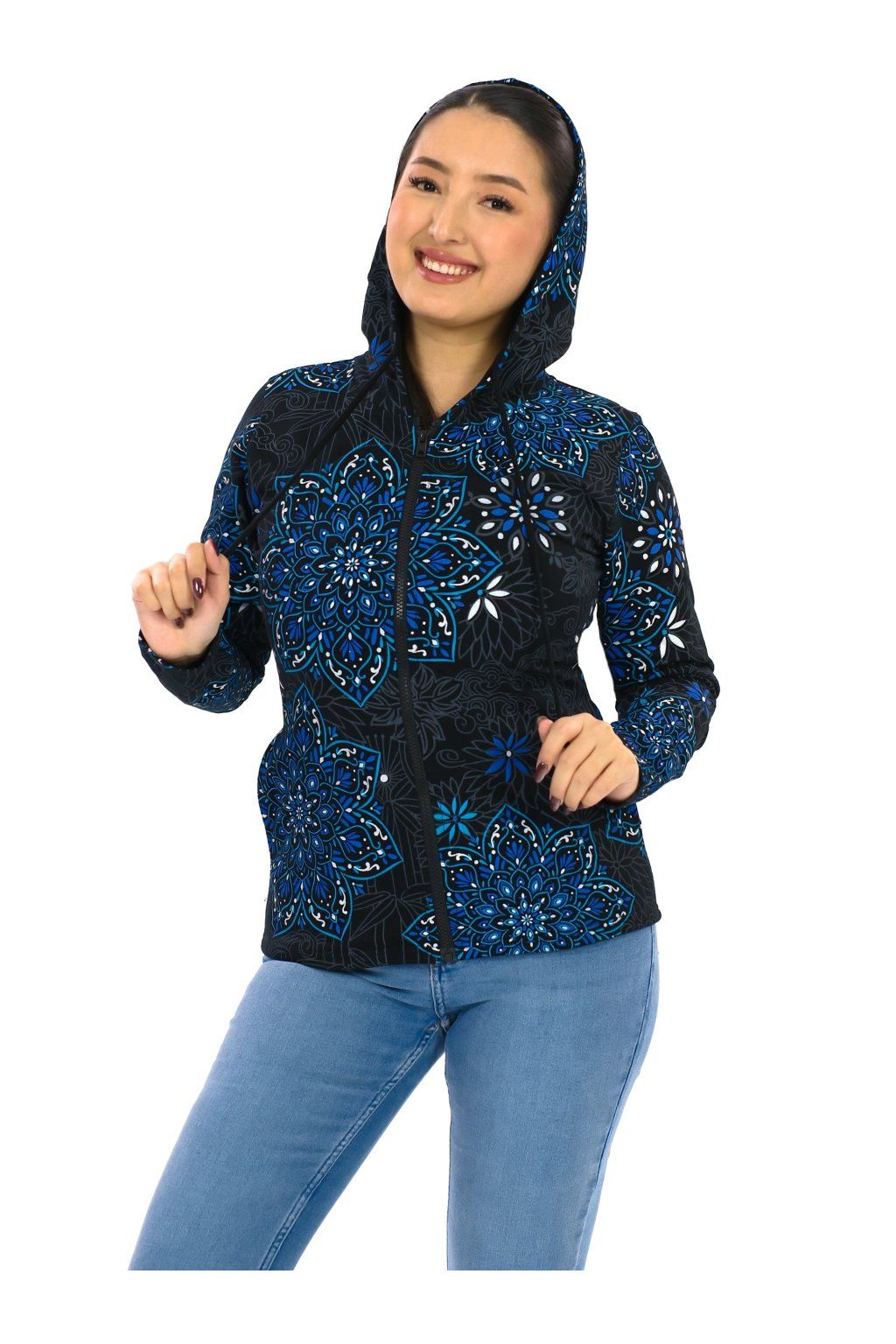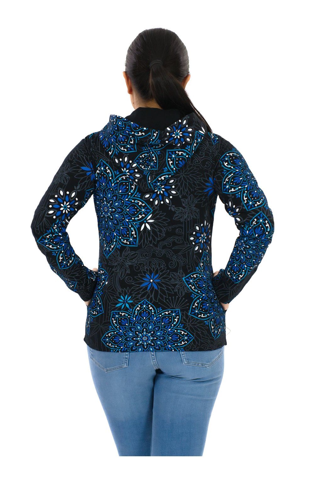 Mikina s kapucí Luana - černá s tyrkysovou a modrou