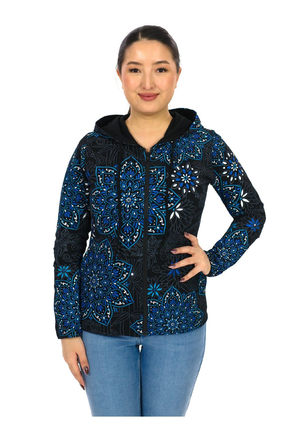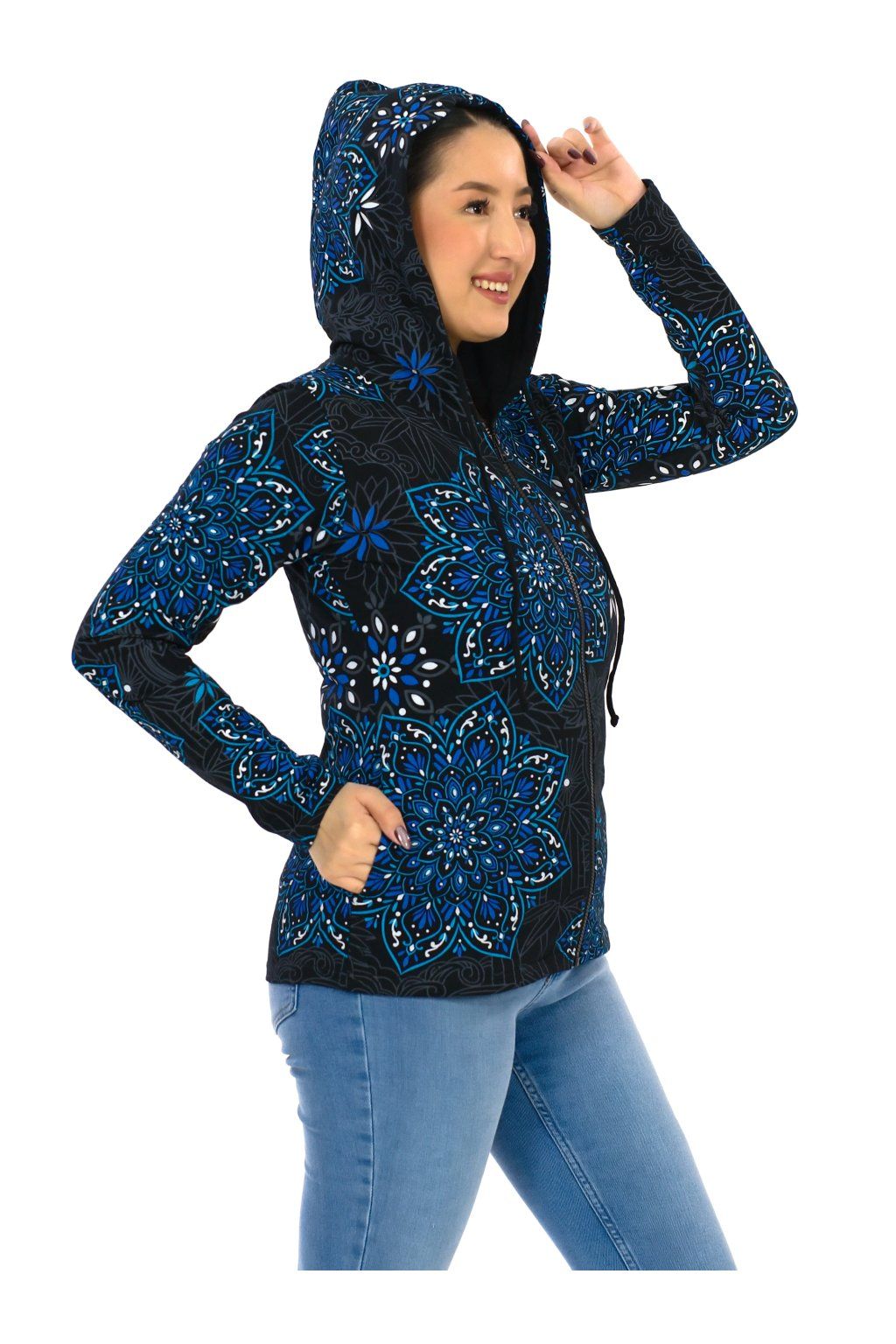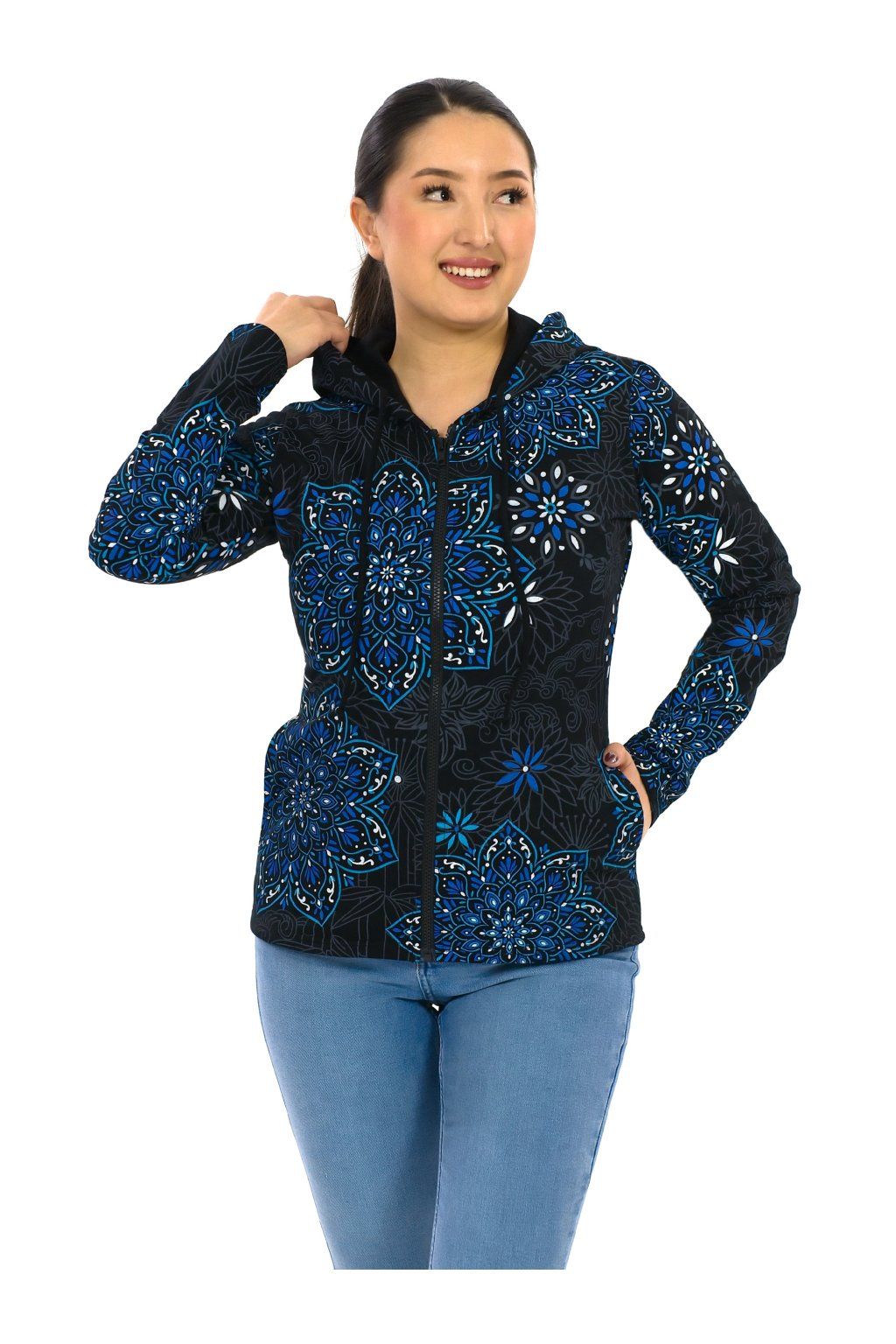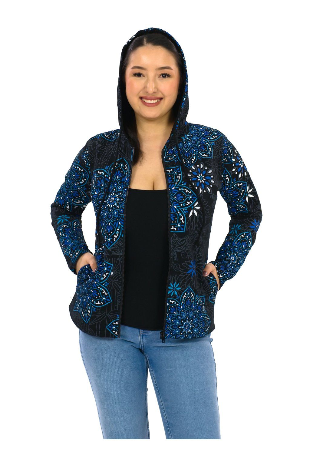 Mikina s kapucí Luana - černá s tyrkysovou a modrou