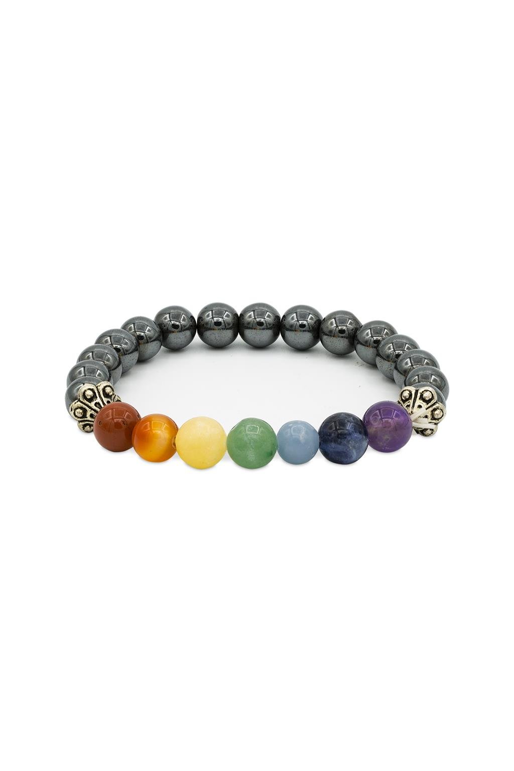 Amethyst, sodalit, zelený aventurin, žlutý aventurin, karneol, granát a tyrkys.