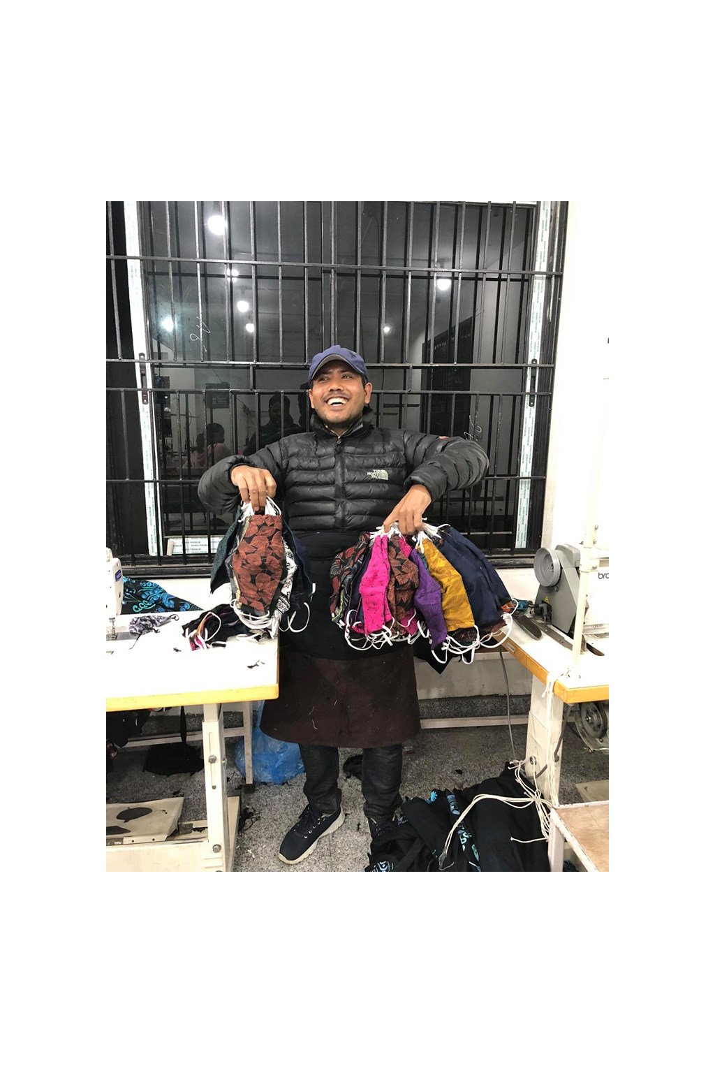 Bavlněné, pratelné, třívrstvé roušky ušité s láskou v naší dílně v Nepálu.