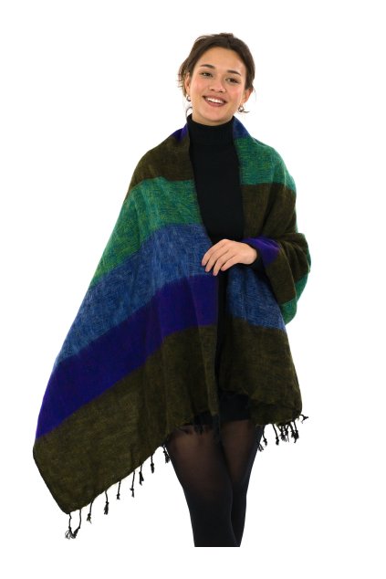 Materiál: 100% ručně tkaná hřejivá šála ze 70% vlny a 30% bavlny pro její pevnost
