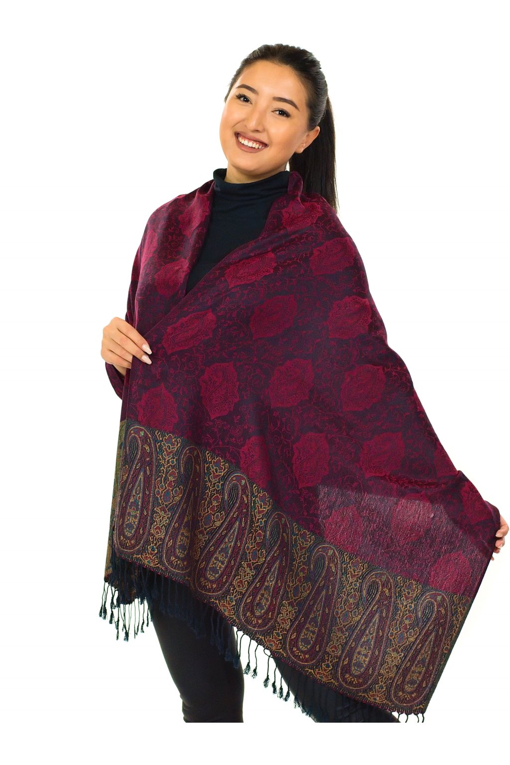 Nádherný šál lehký a jemný jako pírko, vyráběný z materiálu známého jako cashmere. Je zdobený květinami či ornamenty a z každé strany vytváří při určitém světle jiný barevný odstín.