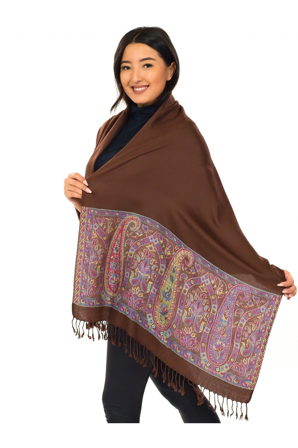 Šátek pašmína Nepal - hnědá