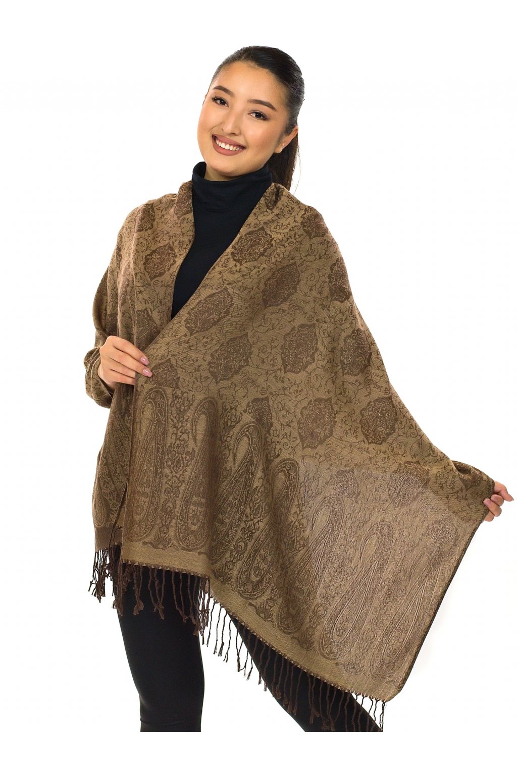 Šátek pašmína Nepal - hnědá