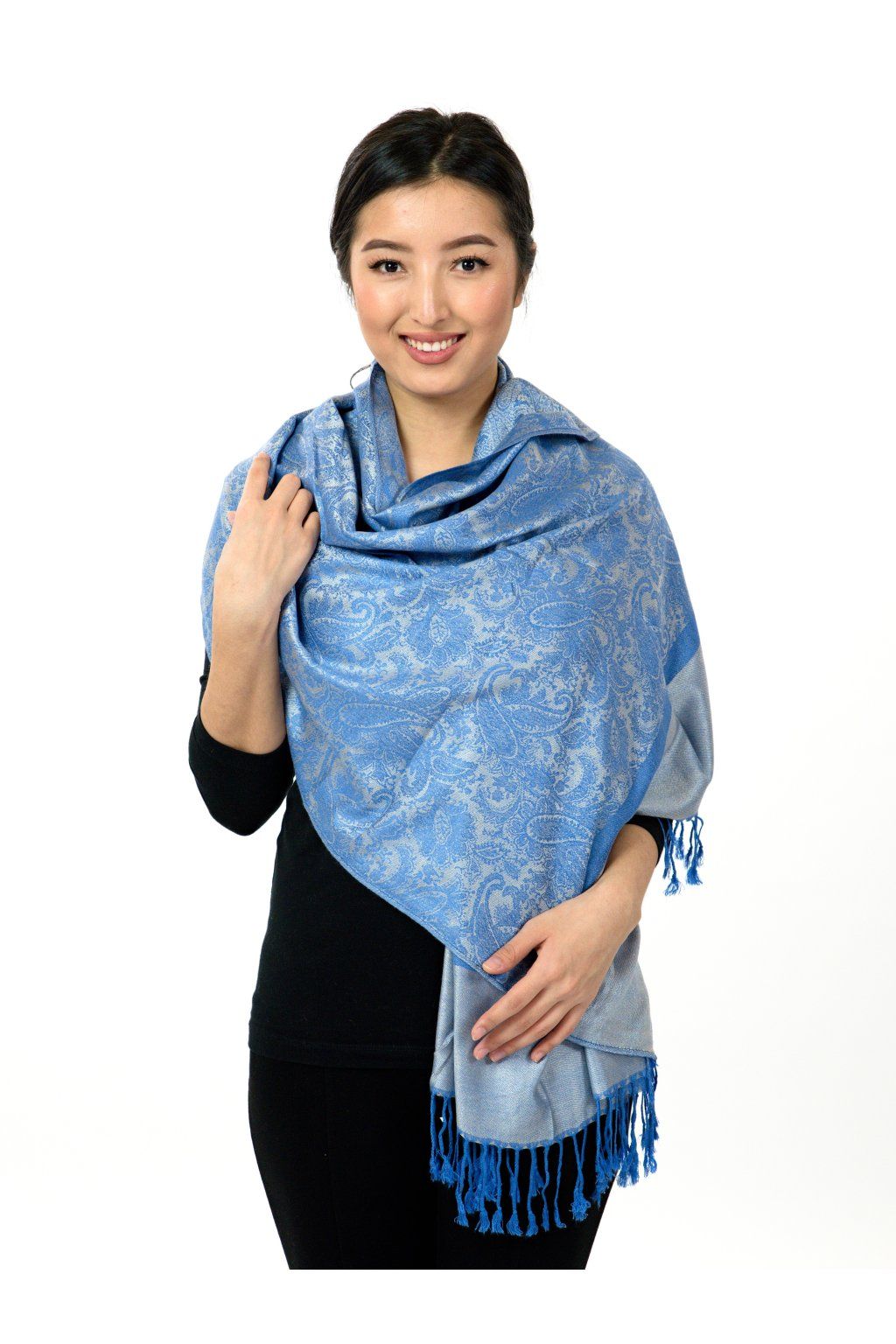 Šátek pašmína Nepal - modrá s šedivou