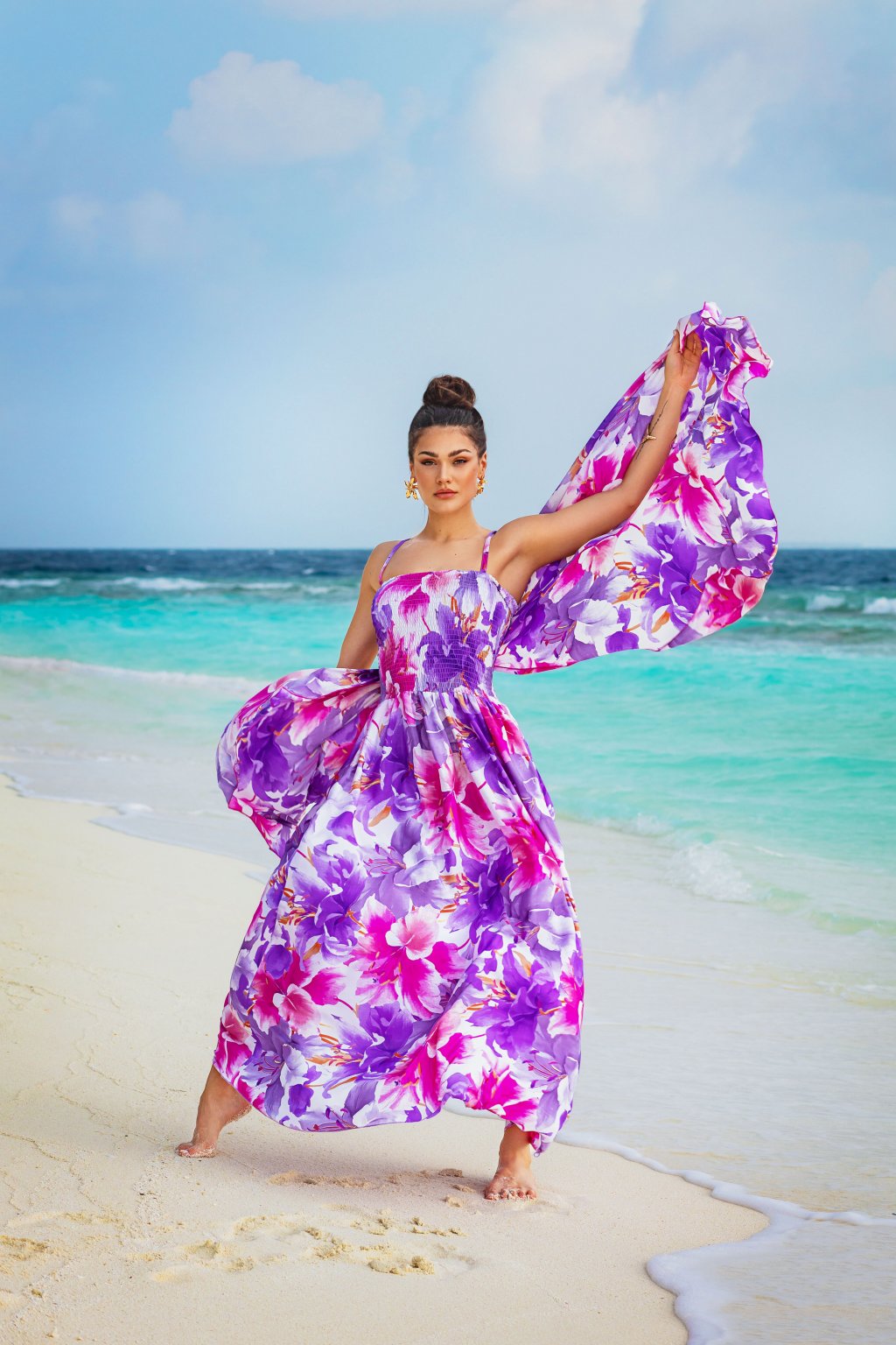 Nádherný šátek lehký a jemný jako pírko, který je zdobený květinami či ornamenty. Můžete ho nosit jako doplněk k našim šatům, sukním nebo kalhotám a sladit si tak váš outfit do stejných vzorů.