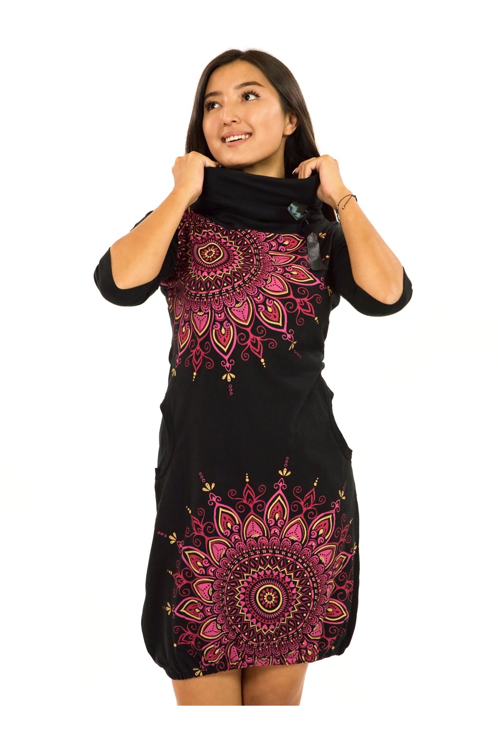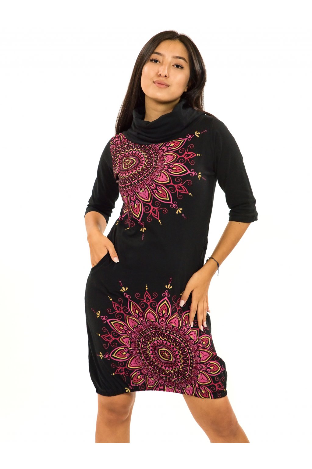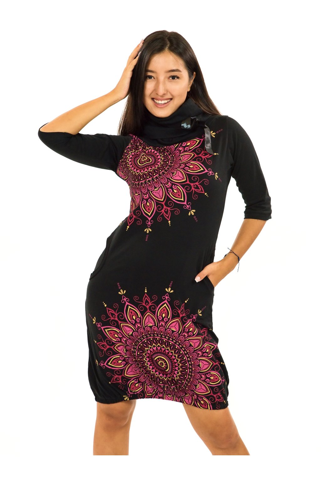 Originální a krásné balonové šaty Tara jsou dokonalou kombinací barev a mandal. Postavě lichotící prodloužený střih skvěle podtrhuje ženské křivky a vykouzlí krásnou siluetu. Šaty mají pohodlný 3/4 rukáv. Vyrobené jsou z velmi příjemné bavlny. Šaty jsou navíc doplněné o dvě praktické kapsy.
