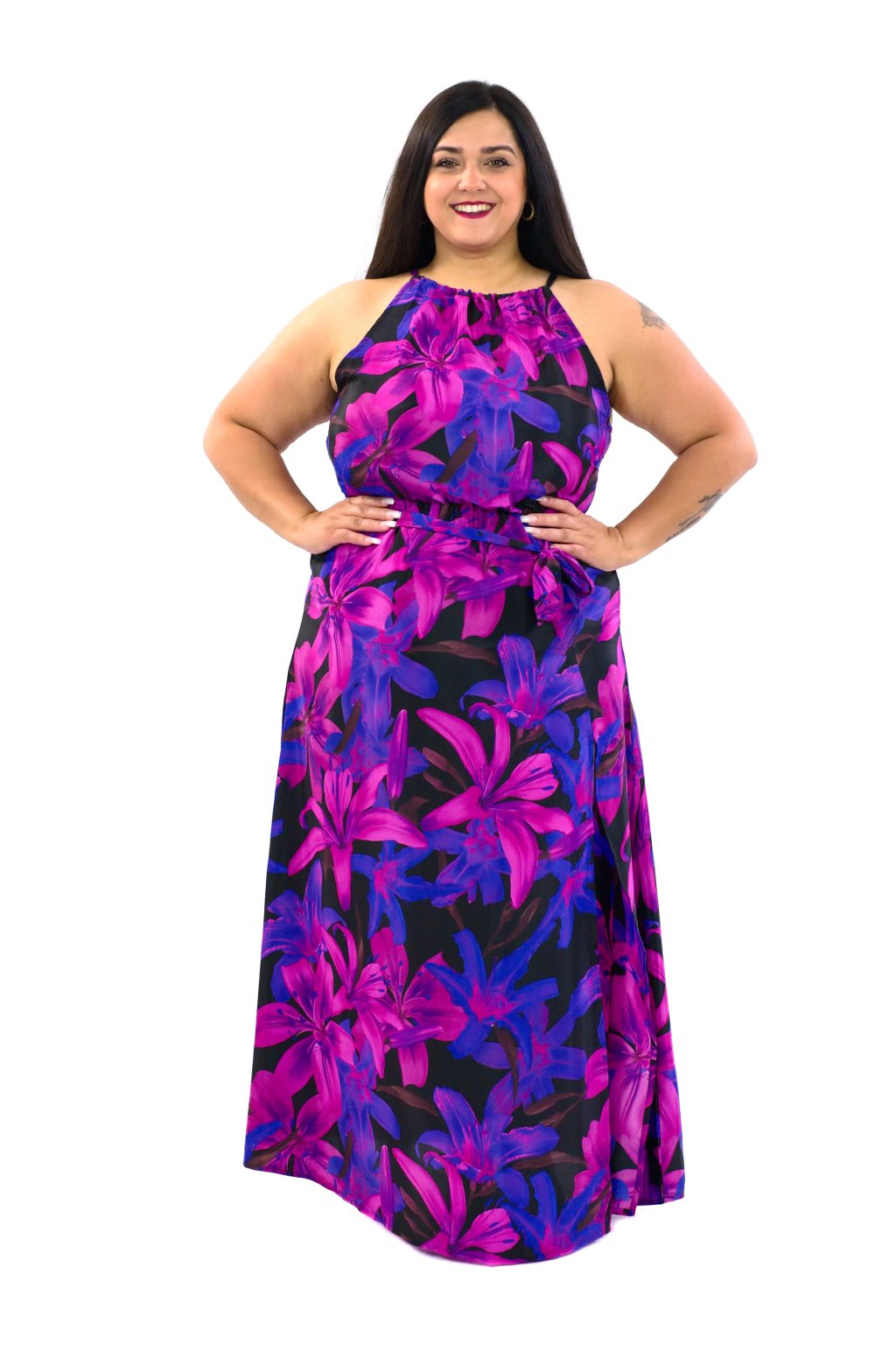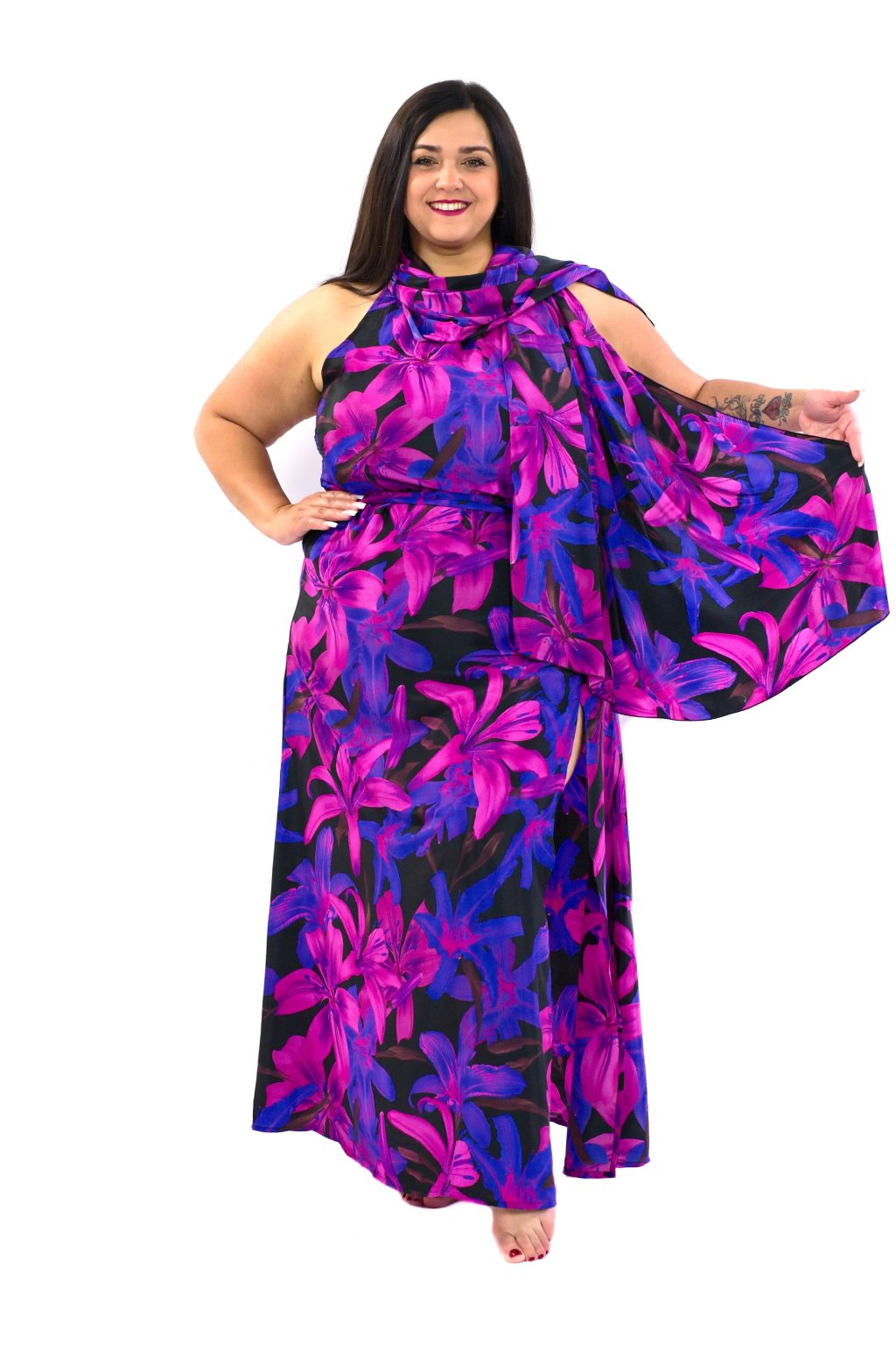 Naše dlouhé šaty se pyšní jedinečným vzorem tropických květin. Hedvábně hladký materiál, ze kterého jsou šaty ušité, vás pohladí na kůži, kdykoli si je vezmete na sebe.