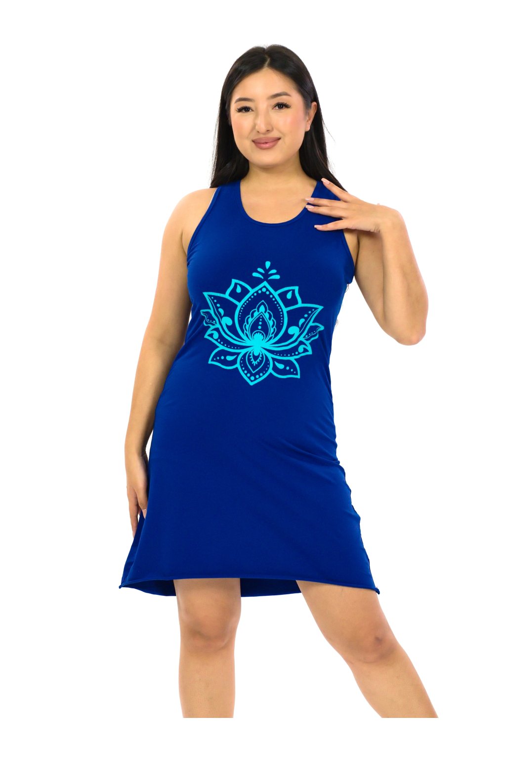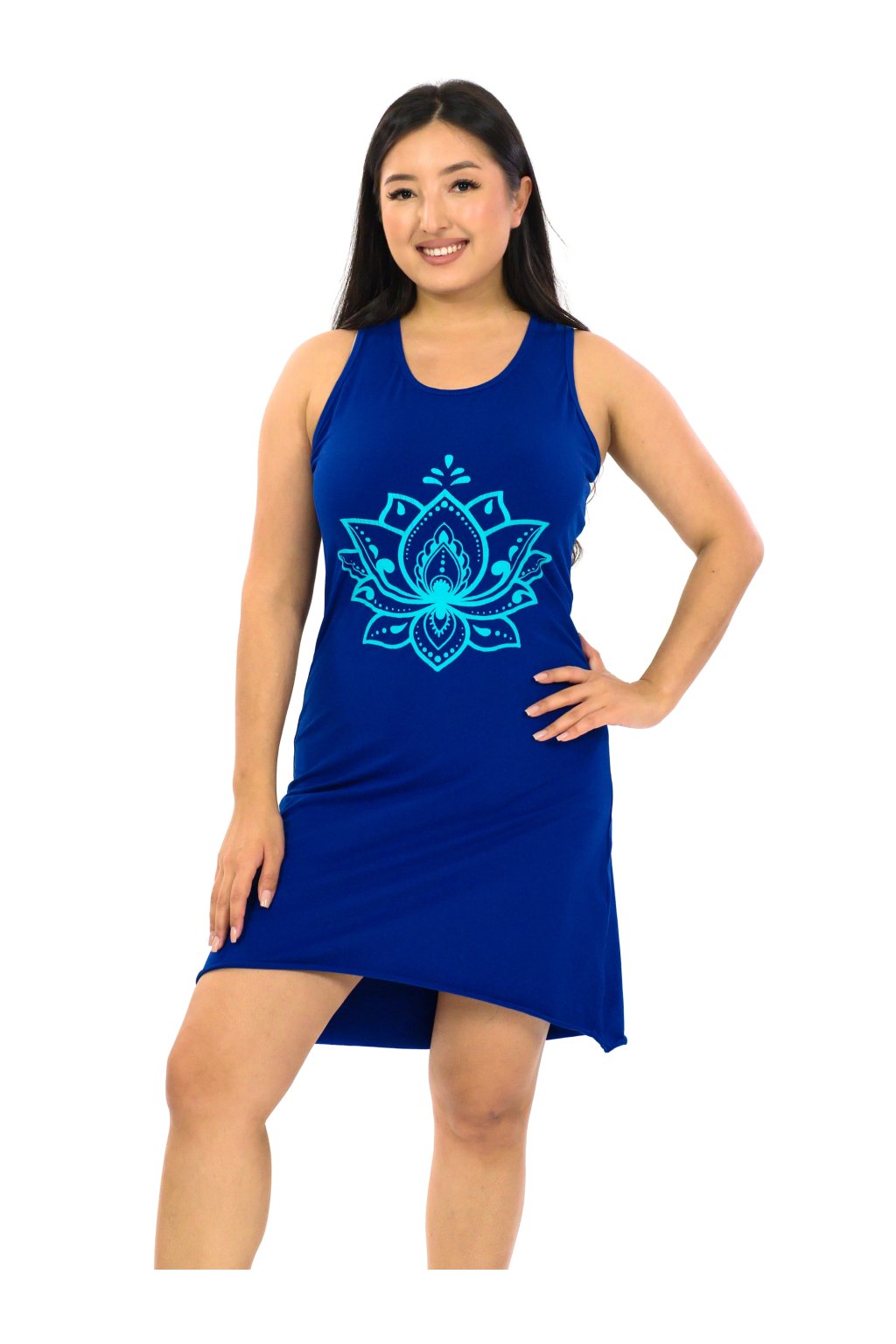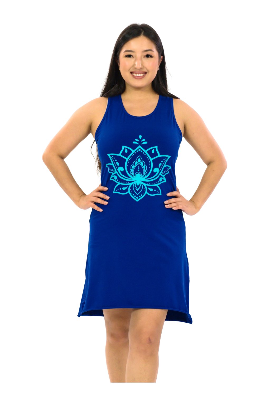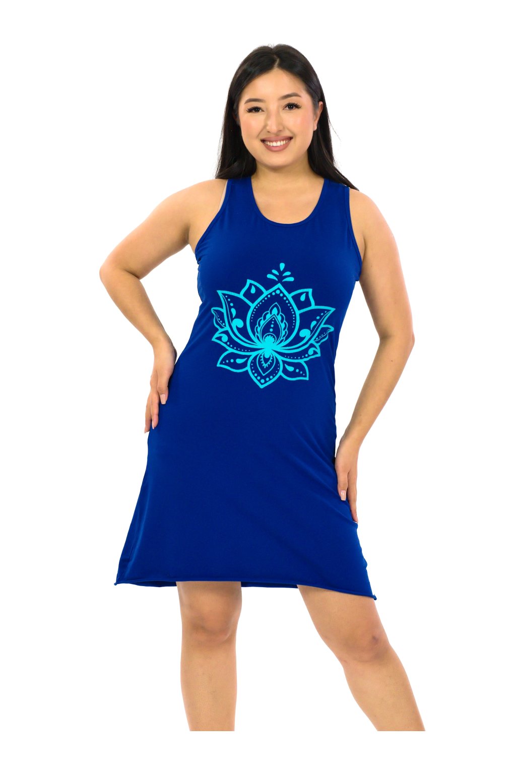 Přiléhavé šaty bez rukávu jsou ideálním doplňkem pro dny, kdy teploty stoupají ke třicítce. Basic šaty s jednoduchým potiskem lotosu se budou báječně hodit k procházkám i odpočinku.