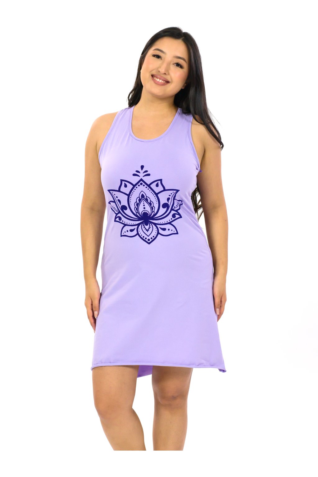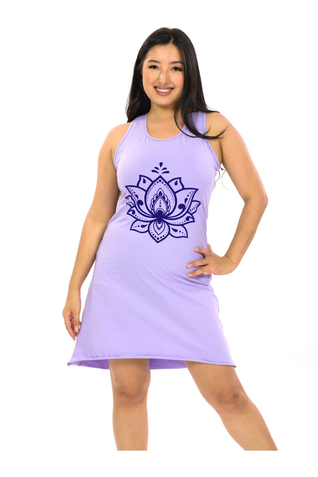 Přiléhavé šaty bez rukávu jsou ideálním doplňkem pro dny, kdy teploty stoupají ke třicítce. Basic šaty s jednoduchým potiskem lotosu se budou báječně hodit k procházkám i odpočinku.