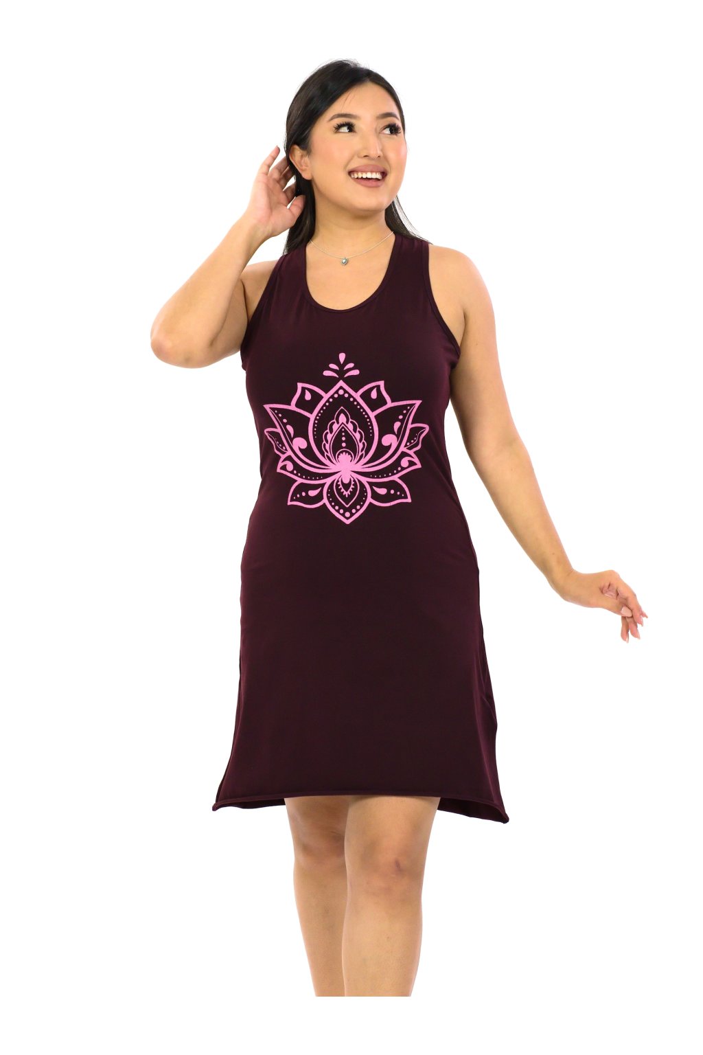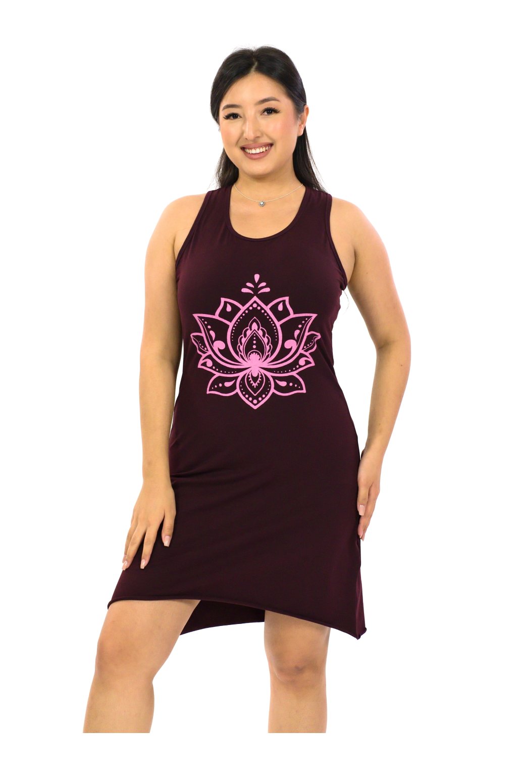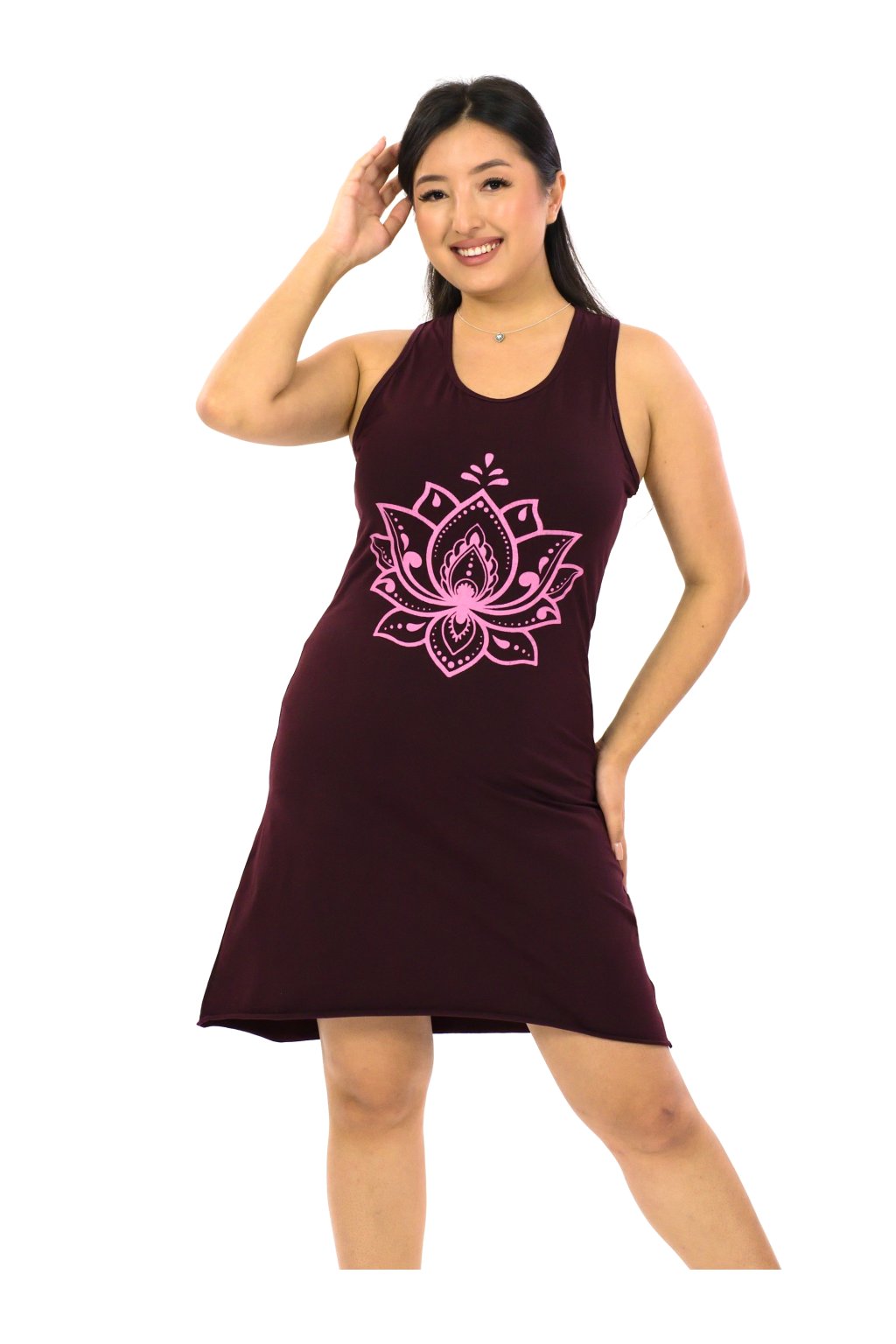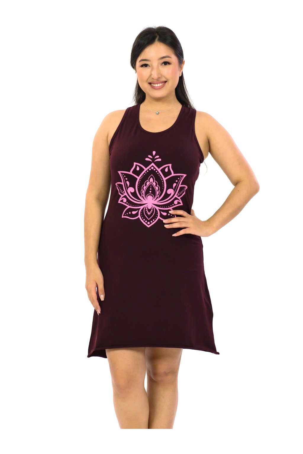 Přiléhavé šaty bez rukávu jsou ideálním doplňkem pro dny, kdy teploty stoupají ke třicítce. Basic šaty s jednoduchým potiskem lotosu se budou báječně hodit k procházkám i odpočinku.