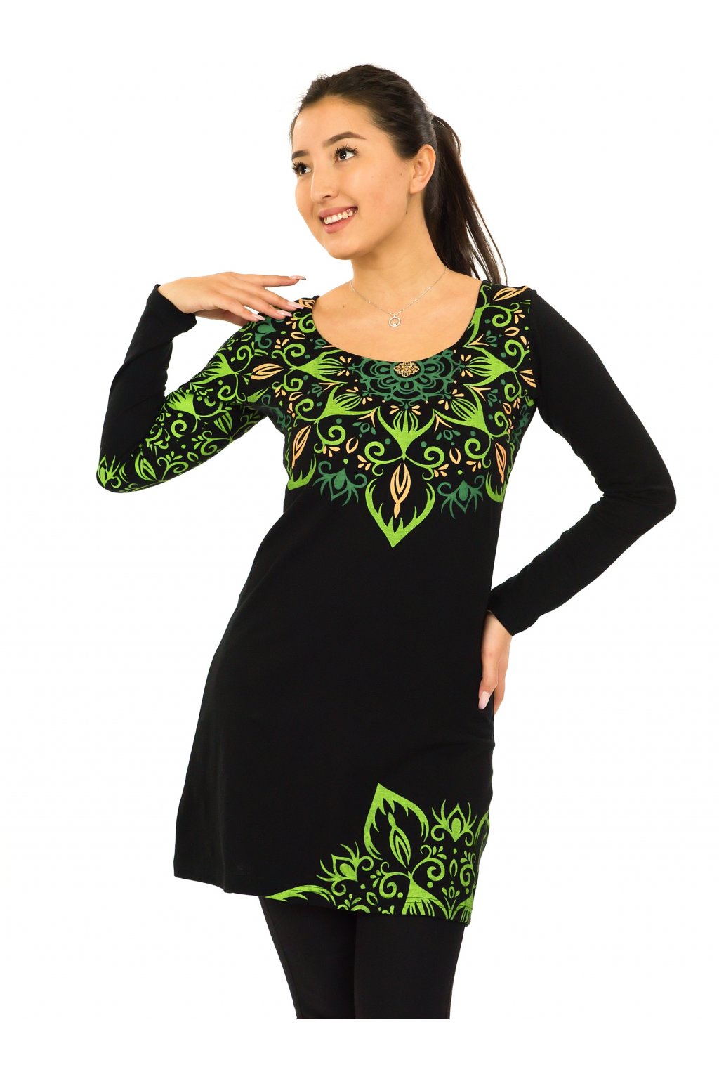 Šaty mají dlouhý rukáv, jsou bez kapes a chlubí se designovým vzorem mandal a ornamentů u výstřihu i na těle šatů, který zaujme na první pohled. Vyrobené jsou z velmi příjemné úpletové bavlny.