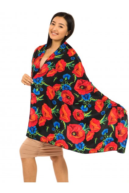 Šaty s širokými rukávy Vlčí mák - černá s červenou