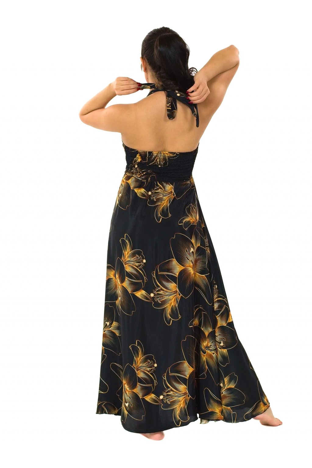 Šaty se zavazováním za krk Lilie - černá se zlatou