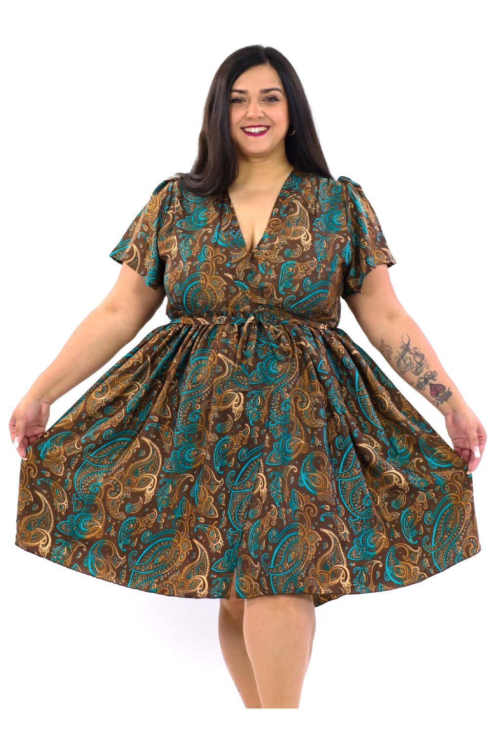 Zavinovací šaty s krátkým rukávem Siera - hnědá s tyrkysovou