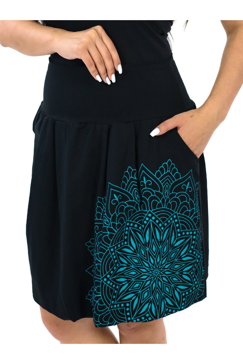 Balonová sukně s kapsami Madia- černá s tyrkysovou