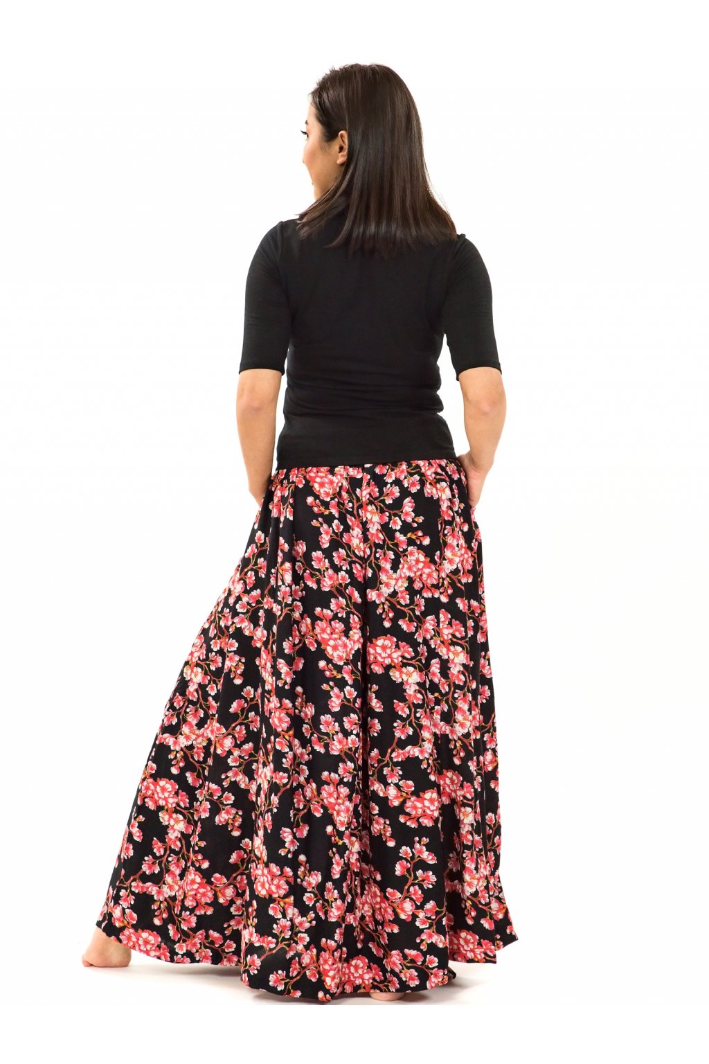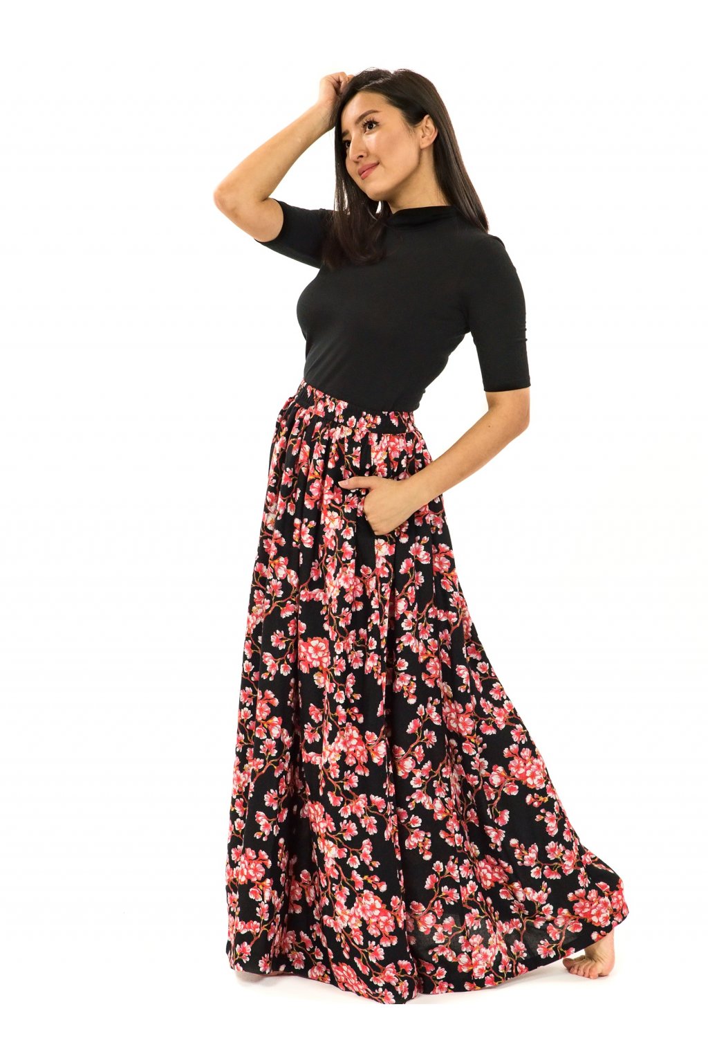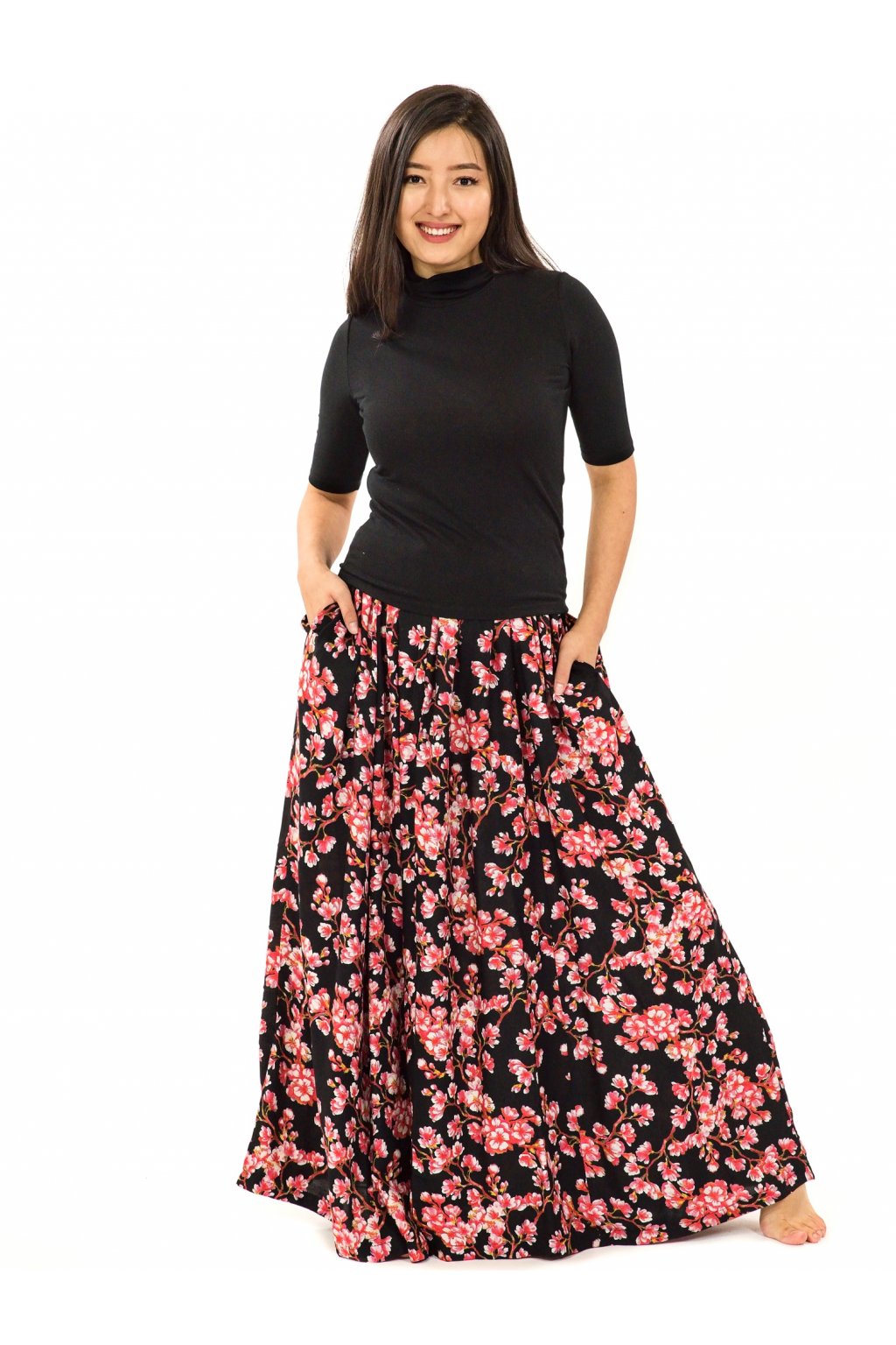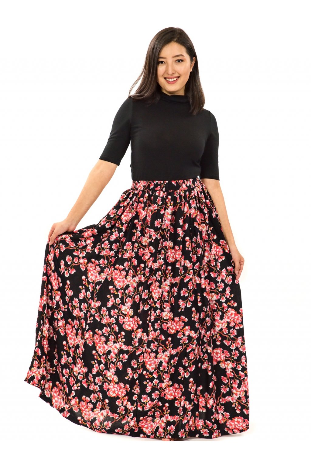 Naše sukně v délce až na zem z jemňoučké viskózy je vybavena dvěma praktickými kapsami, pas je řešen pružnou gumou, takže se v ní budete cítit pohodlně i na konci dlouhého dne. Unikátní vzor inspirovaný pestrobarevnými květy z vás udělá módní ikonu, kamkoli půjdete!