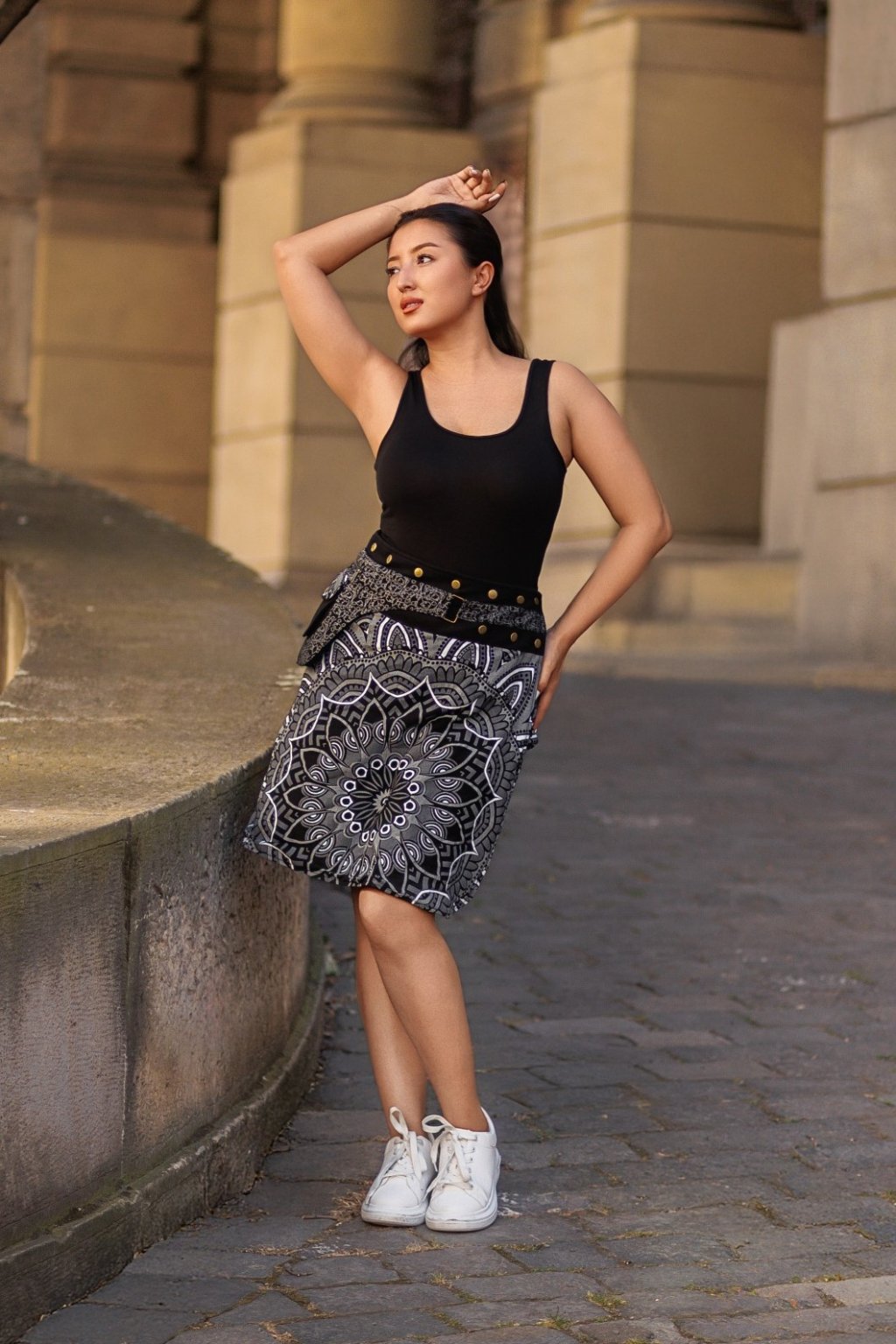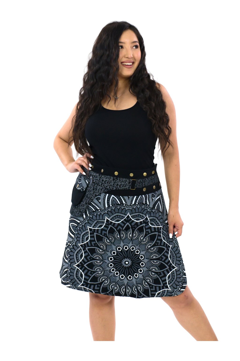 Zavinovací sukně s kapsičkou Gauri - černá s bílou