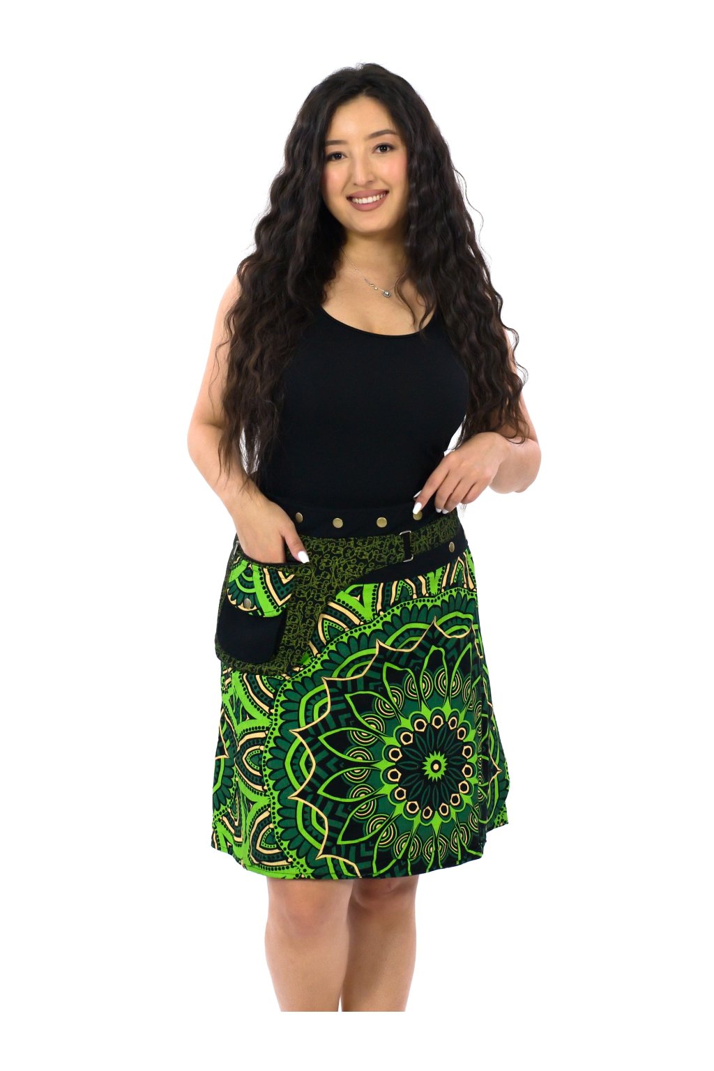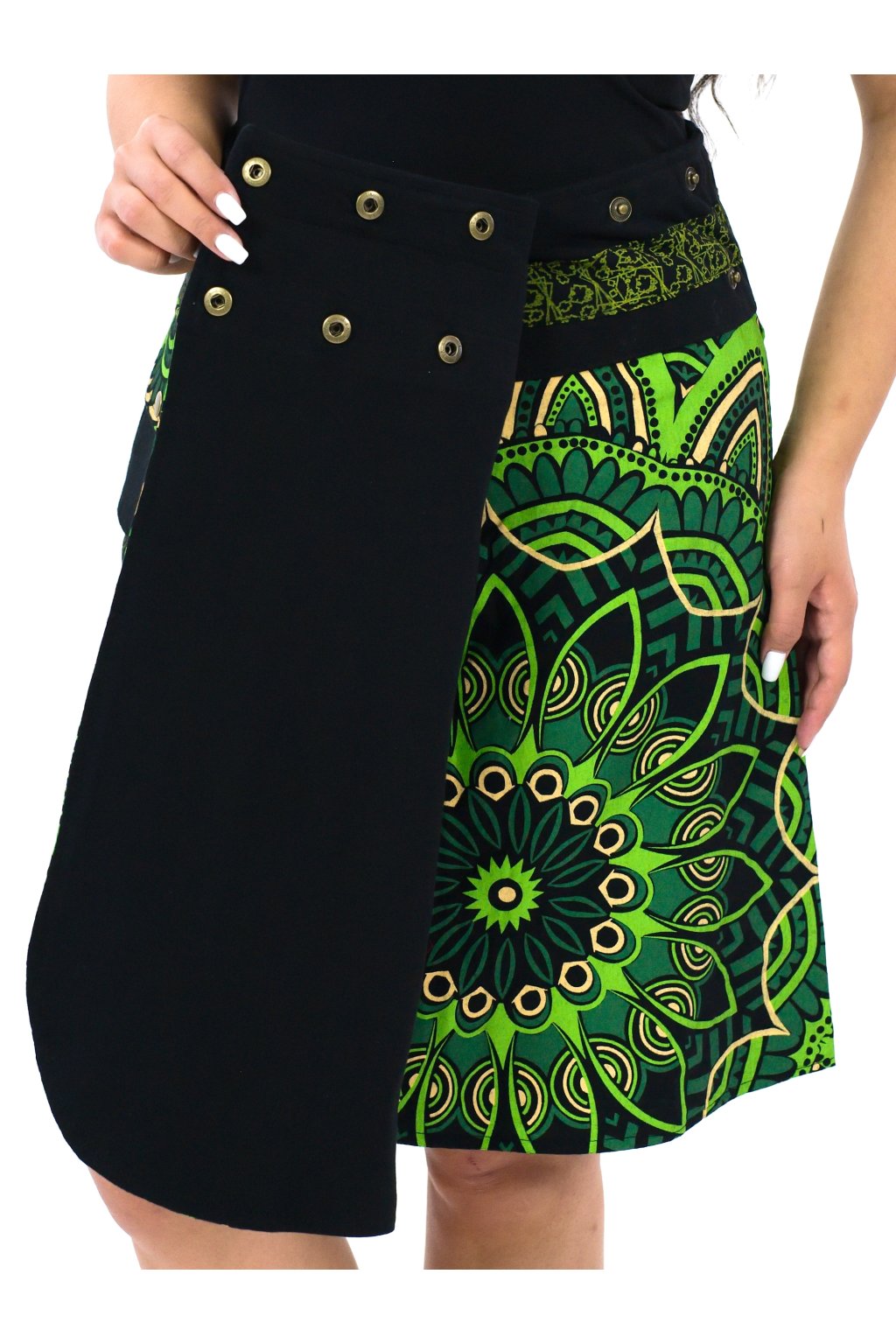 Zavinovací sukně s kapsičkou Gauri - černá s limetkovou