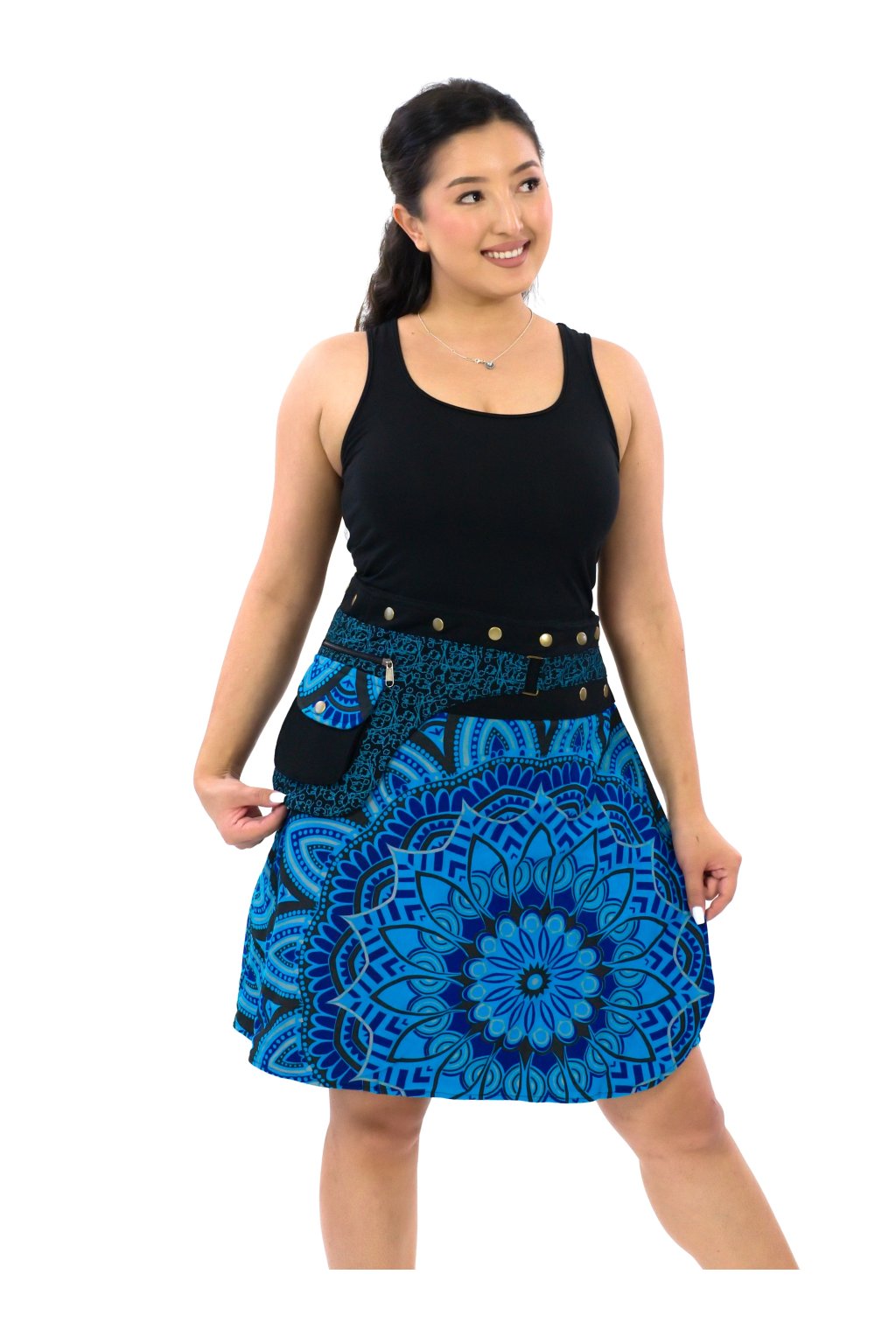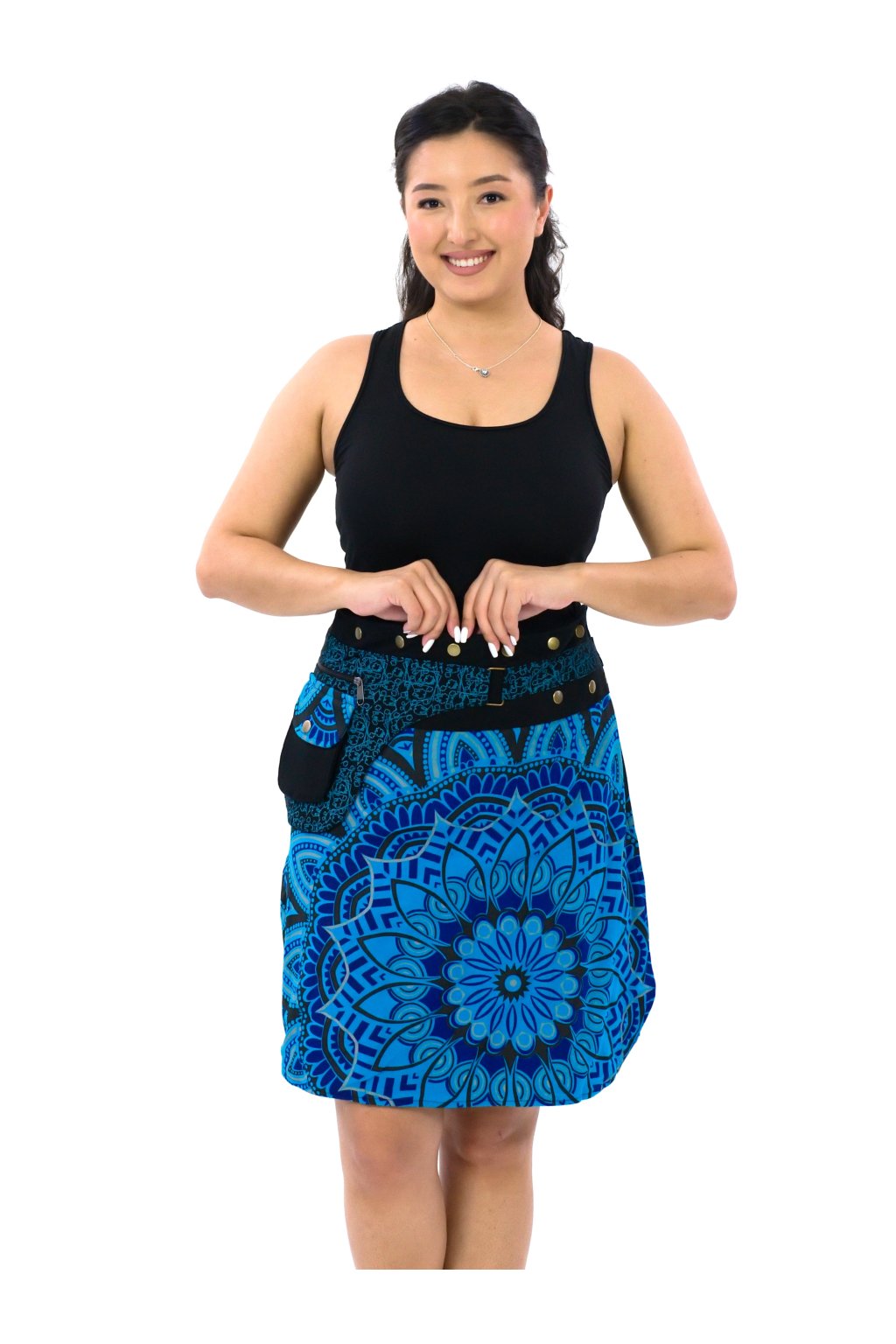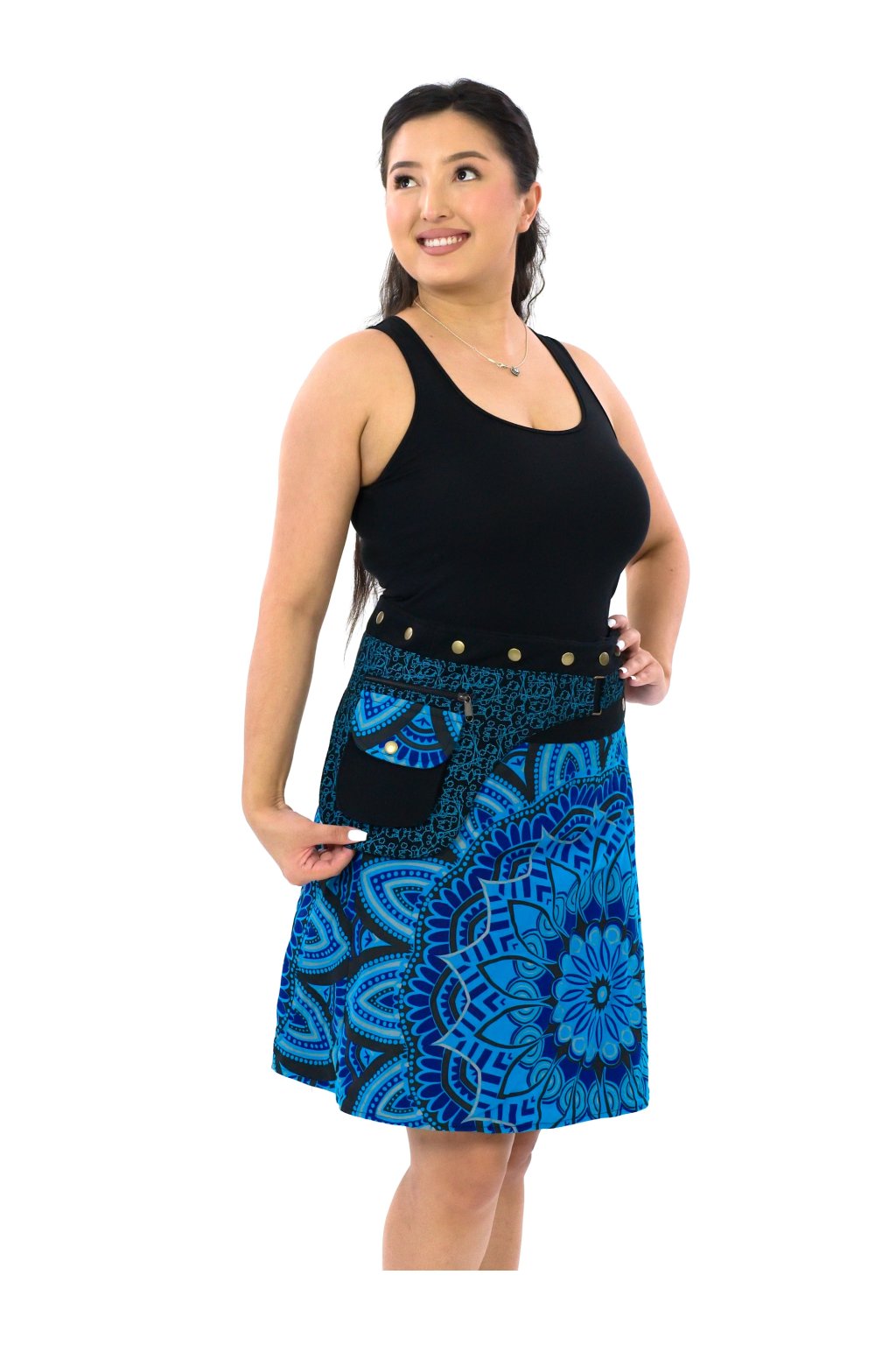 Zavinovací sukně s kapsičkou Gauri - modrá s tyrkysovou