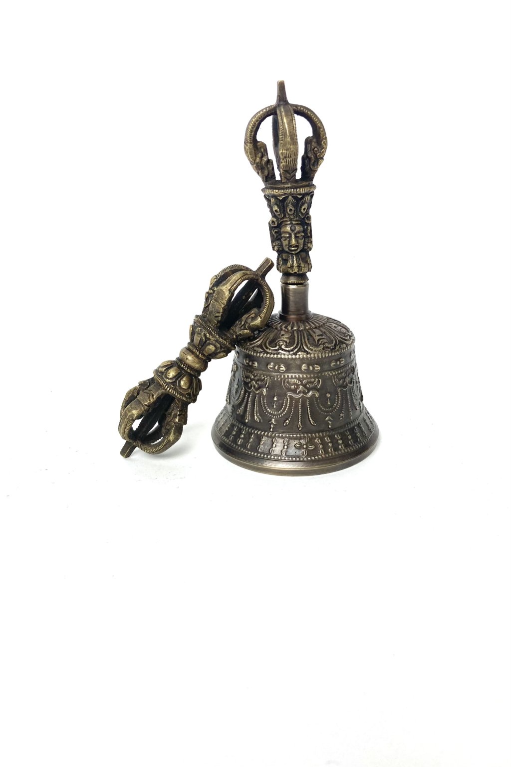 Jedinečný tibetský zvonek dilbu v mistrovském provedení s detailními ručními rytinami a velmi příjemnými tóny.